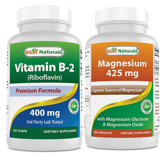 Best Naturals Vitamin B2 (Riboflavin) 400mg & Magnesium Glycinate 425 mg