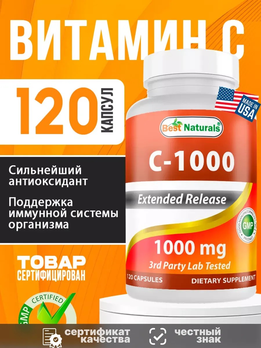 Best Naturals Витамин С аскорбат 1000 мг 120 капсул