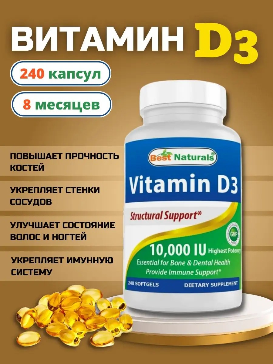 КомплектацияBest Naturals Витамин D3 240 капсул - 1 банка