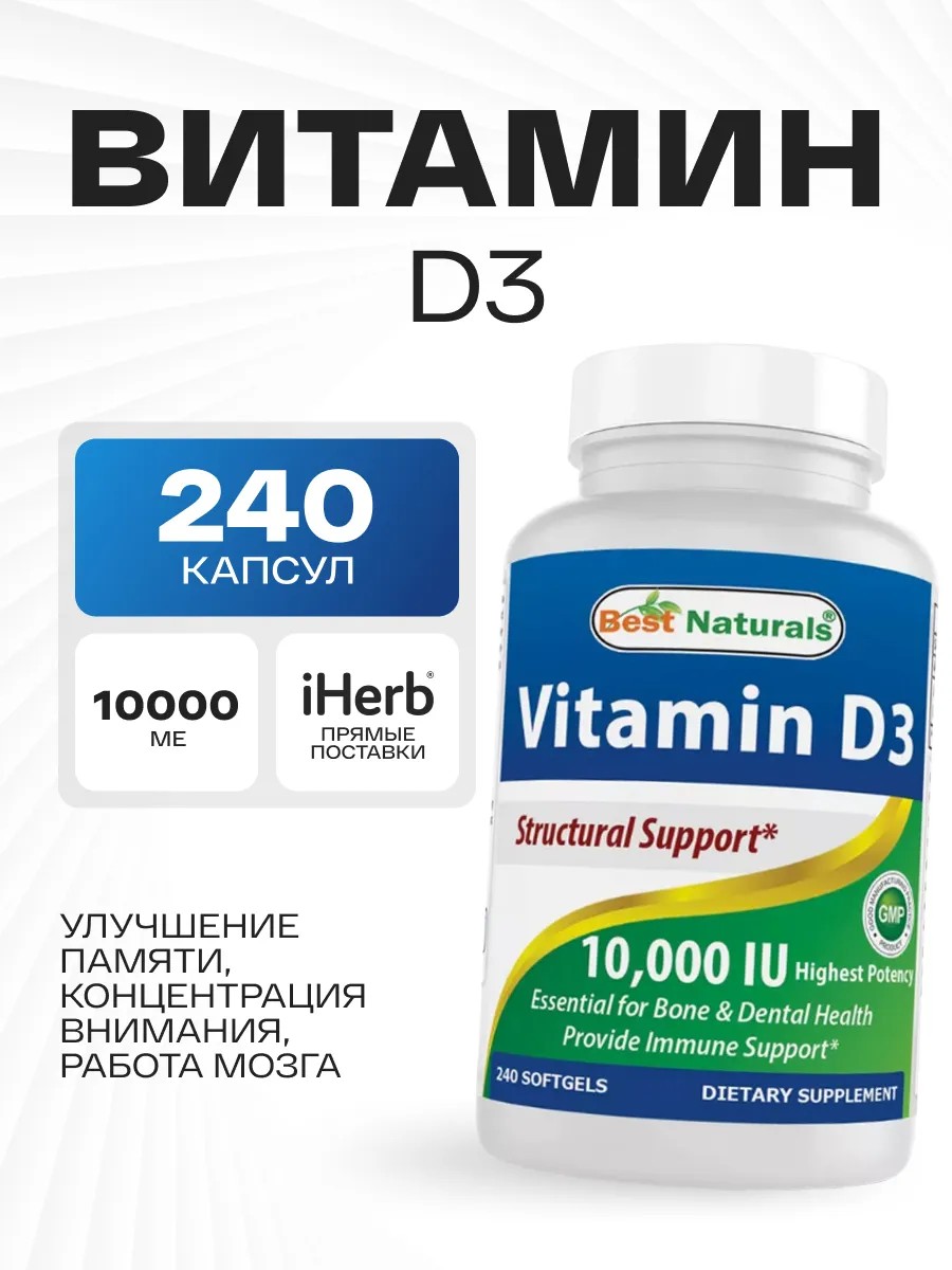 Best Naturals Витамины д3, 240 капсул