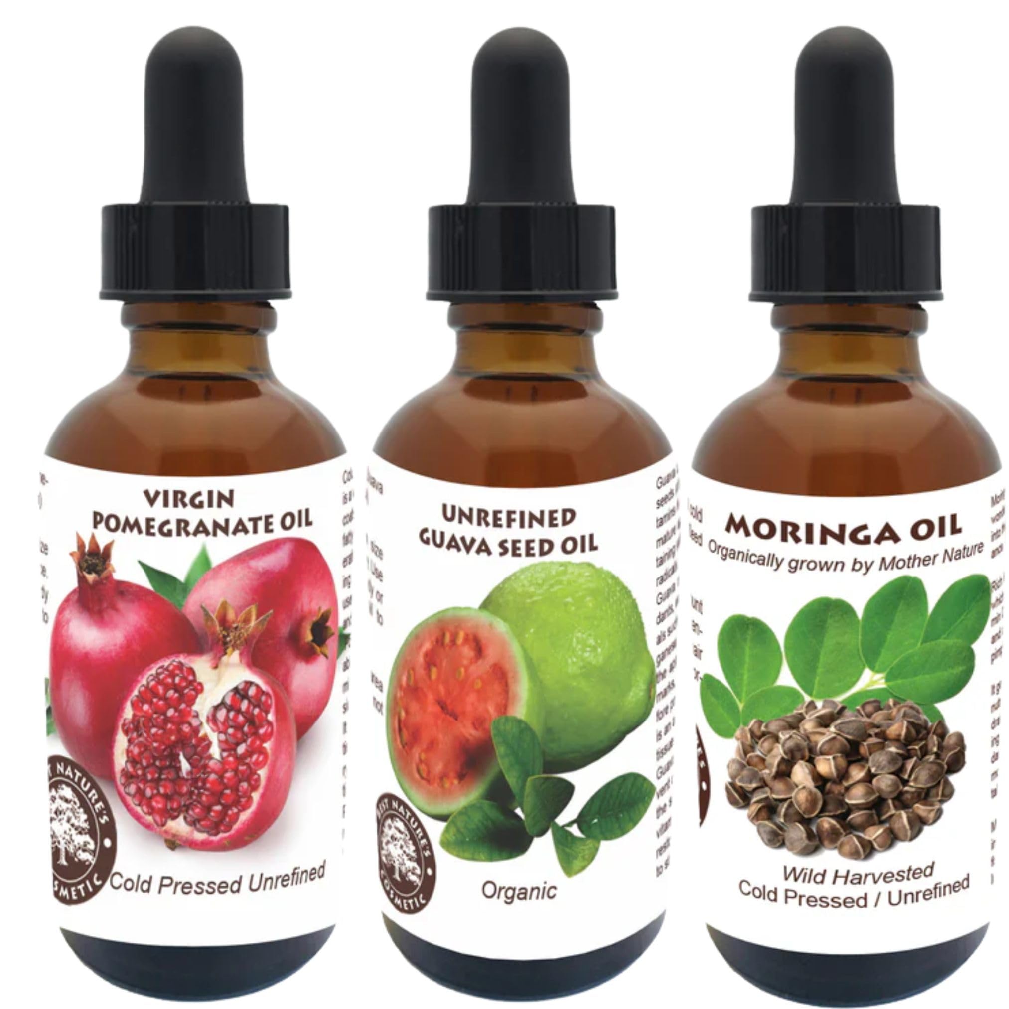 Best Nature's Cosmetics Natural Beauty Oil Trio Guava Pomegranate & Moringa Oils Hydrating Anti-Aging & Revitalizing For Hair Face & Body