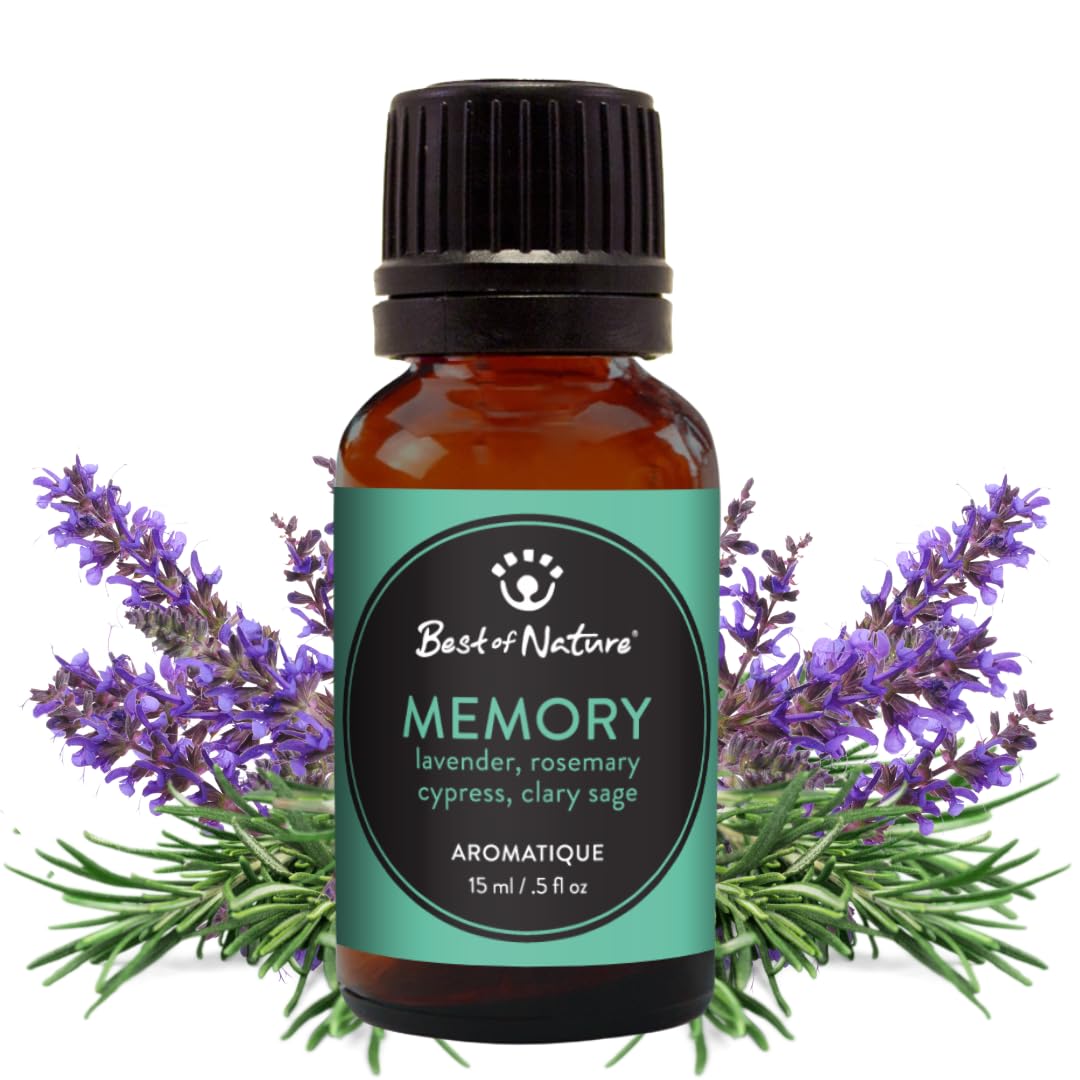 Best of Nature Memory Essential Oil Blend 100% Pure for Diffuser Aromatherapy & Focus Herbal Refreshing Scent with Lavender Rosemary Cypress & Clary Sage