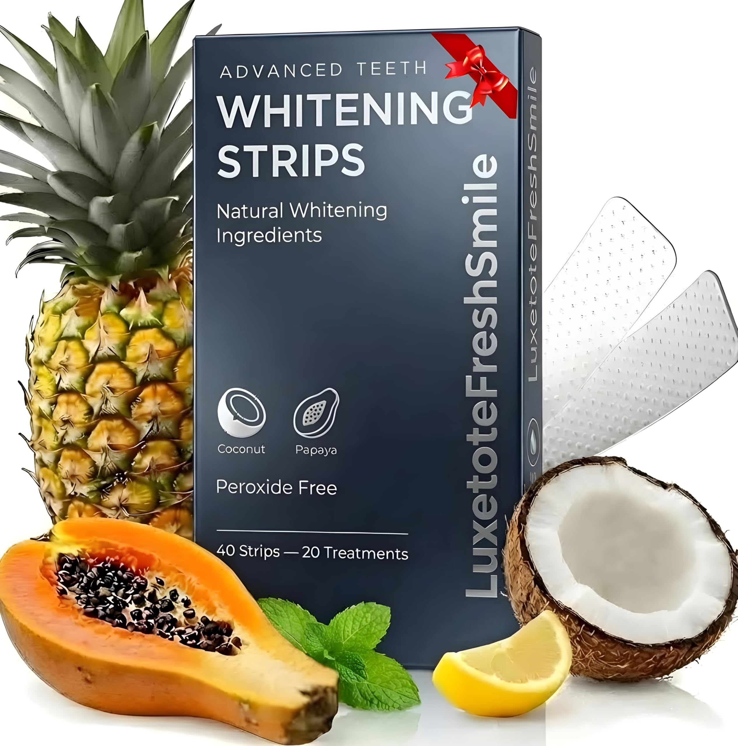 WELCOME TO COCONUT WHITENING STRIPS TRANSFORM YOUR SMILE AT HOME – SAFELY, NATURALLY, AND FAST! EASY, DAILY WHITENING SUPPORT. ? Say goodbye to stained or dull teeth and hello to a brighter, confident smile ? Specially Formulated for Sensitive Teeth – Dental Whitening Strips That Protects Enamel GENTLE EFFECTIVE FORMULA. ? Protects enamel while achieving a dazzling smile ? Natural Coconut Mint formula removes stains while keeping breath fresh ? Fast, visible results in just 7 days with only 30 minutes per treatment ? Easy, no-slip strips stay in place while you talk, drink, or move COMPLETE 20-DAY SUPPLY. ? Includes 40 strips (20 treatments) for a full smile makeover ? Perfect for daily use and anyone looking to boost confidence safely SAFE, NATURAL, CONVENIENT. ? Professional Whitener Strips You Can Use at Home, Work, or While Travelling ? Enjoy natural, radiant results without expensive dental treatments ? Note: Packaging design and printed text may vary by supplier batch formula and intended use remain the sameWithout the sensitivity – Achieve bright, whitening strips for teeth sensitive and protect enamel with Luxetote dental whitening treatment strips. Each kit includes 40 strips for 20 treatments. Long-lasting results – When enamel is healthy, your fresh smile can last longer! That's why Luxetote whitening strops use ingredients that effectively remove stains while protecting enamel. Clinically verified – Teeth whitening strips sensitive teeth kit, clinically proven toothpaste whitener without sensitivity, using a blend of safe, good-for-you ingredients trusted by dentists like Dead Sea salt, coconut oil, and lemon peel oil. Enamel friendly – Purple whitening strips with Unique Stain Targeting Technology help remove coffee, tea, red wine, and smoking stains while supporting strong enamel and naturally bright, white teeth. A healthy way to whiten – Luxetote express whitening strips break down deep stains gently, without sensitivity, giving you a visibly brighter and fresh smile that feels as great as it looks.