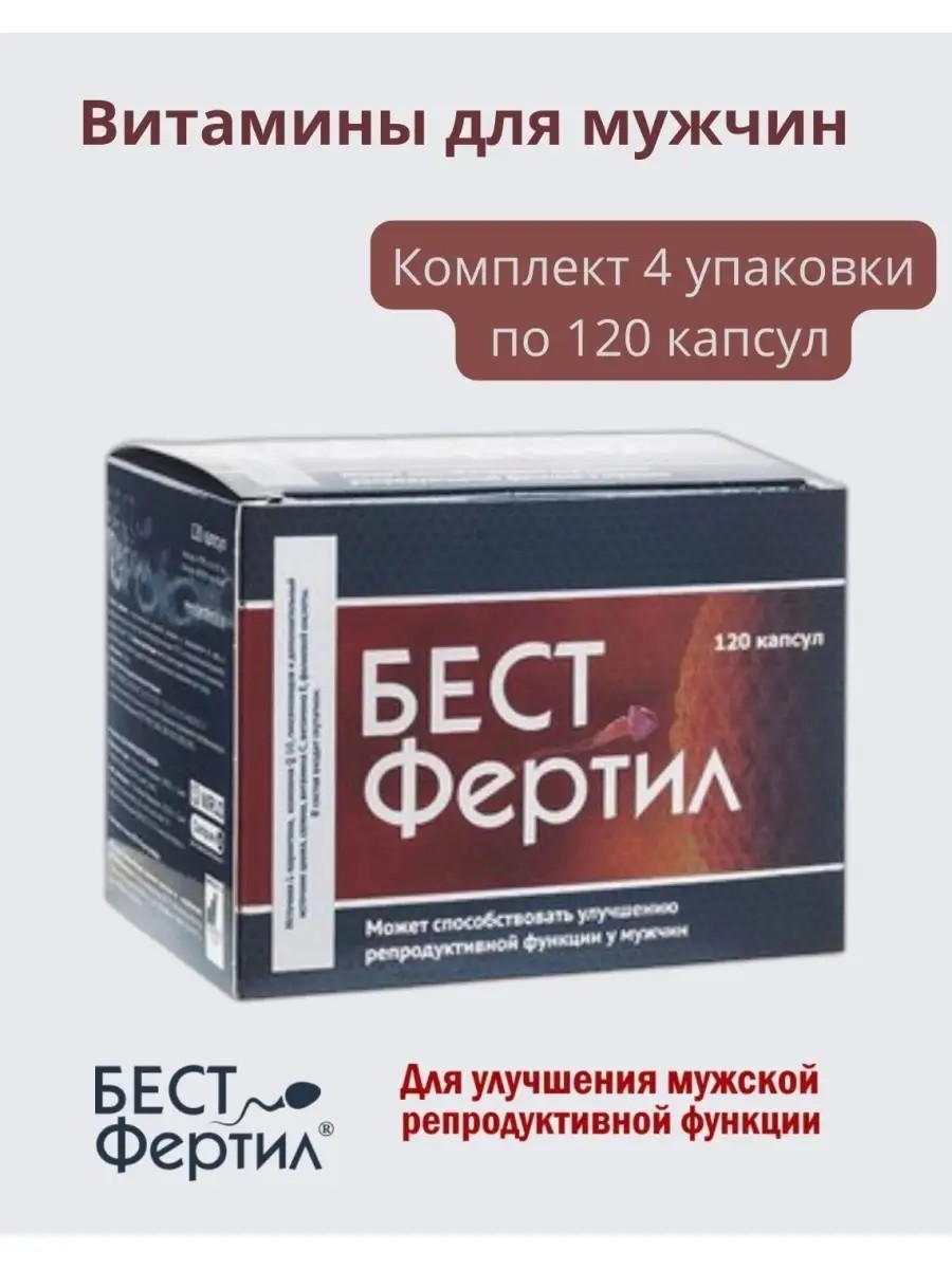 Vitamins BESTFERTIL N120 capsules MORNING / EVENING 450 MG to improve reproductive function in men. The ingredients in BESTFertil help improve reproductive function in men; increase the fertilizing ability of sperm, improve sperm motility, and increase the number of morphologically mature sperm in the ejaculate (SanPiN 2.3.2.1290-03 p. 2.1). This dietary supplement is a source of L-carnitine, coenzyme Q10, ginsenosides, and an additional source of zinc, selenium, vitamins C, E, and folic acid. Sperm are formed and mature over two and a half months. To produce high-quality, fertilizable sperm, the body requires the necessary amounts of active ingredients, which are often insufficient in regular food. The combined complex BESTFertil contains everything necessary to enhance male fertility and helps improve reproductive function in men. It is not a medication. It is recommended to consult a doctor before use.