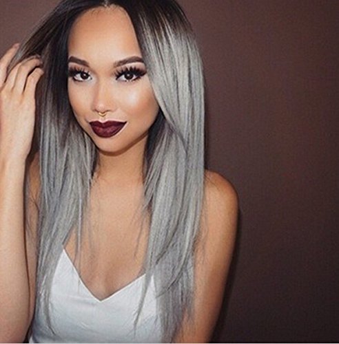 Bestland lange seidige schwarz-graue glatte Perücke, hitzebeständige Kunstfasern, Synthetik-Perücke