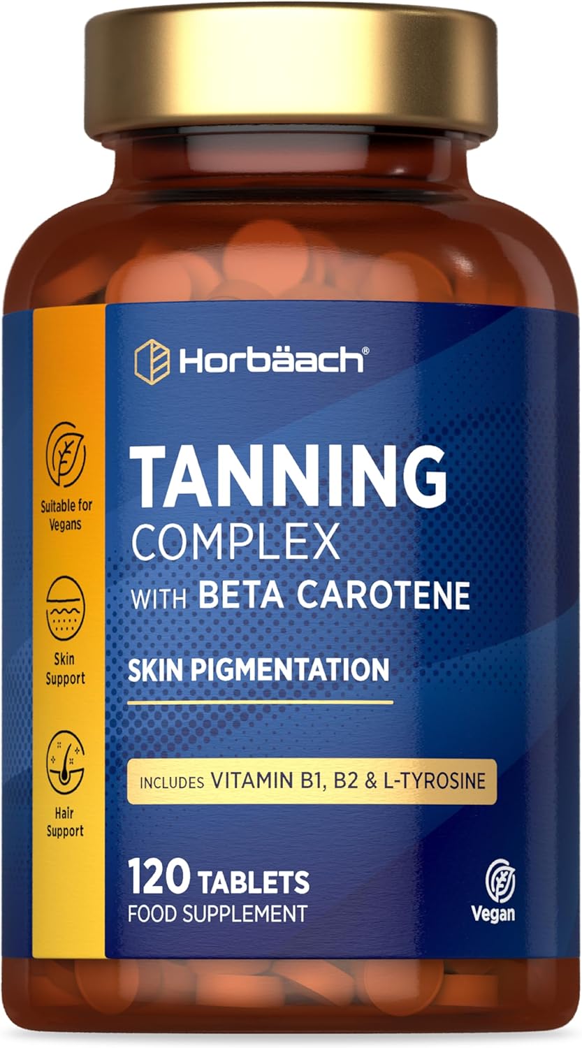 Horbaach tanning tablets are packed with vitamins and supplements to give your tan a natural boost. A blend of L-Tyrosine, beta-carotene, copper, zinc and vitamins B1 and B2. Copper contributes to the maintenance of skin pigmentation, while zinc, thiamine and riboflavin contribute to the maintenance of normal skin. INGREDIENTS Bulking agents (dicalcium phosphate, microcrystalline cellulose), L-tyrosine, beta-carotene preparation (modified starch, corn starch, beta-carotene, antioxidant (DL-Alpha tocopherol), copper gluconate, zinc oxide, anti-caking agents (magnesium stearate, silicon dioxide), Vitamin B1 (thiamine hydrochloride), vitamin B2 (riboflavin). DIRECTIONS FOR USE For adults, take two (2) vegan tablets daily, preferably with a meal. Do not exceed the indicated dose. If you experience any adverse reactions, stop using this product immediately and consult your doctor. If the seal under the cap is damaged or missing, do not use it. Not intended for use by persons under 18 years of age. Keep out of reach of children. Store in a place SAFETY WARNING Food supplements should not replace a varied and balanced diet and a healthy lifestyle. This product contains vitamin A. Do not take if you are pregnant or may become pregnant, unless advised to do so by a doctor or antenatal clinic. If you are breastfeeding, taking medication, or have a medical condition, consult your doctor or healthcare professional before use. DISCLAIMER We go to great lengths to ensure that the information on this page is accurate at the time the page was last edited. While we are constantly reviewing and developing our products to meet the needs of our consumers, consumers, especially those with allergies and intolerances, should always check the product labeling, warnings and instructions provided with the delivered product, before use or HORBAACH MANUFACTURERS - With over 40 years in the health industry, we source premium supplements, produced to high quality control standards in accordance with GMP and BRC guidelines. SUITABLE FOR: Horbaach Tanning Tablets are vegan and vegetarian friendly and contain no artificial colors or preservatives, and are suitable for both men and women. EXPERTLY CRAFTED: Our professional formula is backed by our commitment to purity and potency. BEAUTY SHINE: Added Cooper for the maintenance of skin pigmentation (melanin) for a long-lasting glow. NATURALLY PREPARED: L-Tyrosine helps prepare your skin for the sun. Les comprimés de bronzage Horbaach regorgent de vitamines et de suppléments pour donner à votre bronzage un coup de pouce naturel. Un mélange de L-Tyrosine, de bêta-carotène, de cuivre, de zinc et de vitamines B1 et B2. Le cuivre contribue au maintien de la pigmentation cutanée, tandis que le zinc, la thiamine et la riboflavine contribuent au maintien d'une peau normale. INGRÉDIENTS Agents de charge (phosphate dicalcique, cellulose microcristalline), L-tyrosine, préparation de bêta-carotène (amidon modifié, amidon de maïs, bêta-carotène, antioxydant (DL-Alpha tocophérol), gluconate de cuivre, oxyde de zinc, agents antiagglomérants (stéarate de magnésium, dioxyde de silicium) , Vitamine B1 (chlorhydrate de thiamine), vitamine B2 (riboflavine). MODE D'EMPLOI Pour les adultes, prendre deux (2) comprimés végétaliens par jour, de préférence avec un repas. Ne pas dépasser la dose indiquée. En cas d'effet indésirable, arrêtez immédiatement d'utiliser ce produit et consultez votre médecin. Si le joint sous le capuchon est endommagé ou manquant, ne l'utilisez pas. Non destiné à être utilisé par des personnes de moins de 18 ans. Tenir hors de portée des enfants. Conservez dans un endroit AVERTISSEMENT DE SÛRETÉ Les compléments alimentaires ne doivent pas se substituer à une alimentation variée et équilibrée et à un mode de vie sain. Ce produit contient de la vitamine A. Ne pas prendre si vous êtes enceinte ou susceptible de le devenir, sauf sur avis d'un médecin ou d'une clinique prénatale. Si vous allaitez, prenez des médicaments ou souffrez d'un problème de santé, consultez votre médecin ou professionnel de la santé avant utilisation. CLAUSE DE NON-GARANTIE Nous déployons de grands efforts pour garantir que les informations sur cette page sont exactes au moment de la dernière modification de la page. Alors que nous examinons et développons constamment nos produits pour répondre aux besoins de nos consommateurs, les consommateurs, en particulier ceux qui souffrent d'allergies et d'intolérances, doivent toujours vérifier l'étiquetage du produit, les avertissements et les instructions fournies avec le produit livré, avant utilisation ou FABRICANTS HORBAACH - Depuis plus de 40 ans dans l'industrie des produits de santé, nous nous approvisionnons en suppléments de qualité supérieure, produits selon des normes de contrôle de qualité élevées conformément aux directives GMP et BRC. ADAPTÉ POUR : Les comprimés de bronzage Horbaach sont végétaliens et végétariens et ne contiennent aucun colorant artificiel ni conservateur, et conviennent aux hommes et aux femmes. FABRIQUÉE PAR DES EXPERTS : Notre formule professionnelle est soutenue par notre engagement envers la pureté et la puissance. BEAUTY SHINE : Ajout de Cooper pour le maintien de la pigmentation de la peau (mélanine) pour un éclat longue durée. PRÉPARATION NATURELLE : La L-Tyrosine aide à préparer votre peau au soleil.