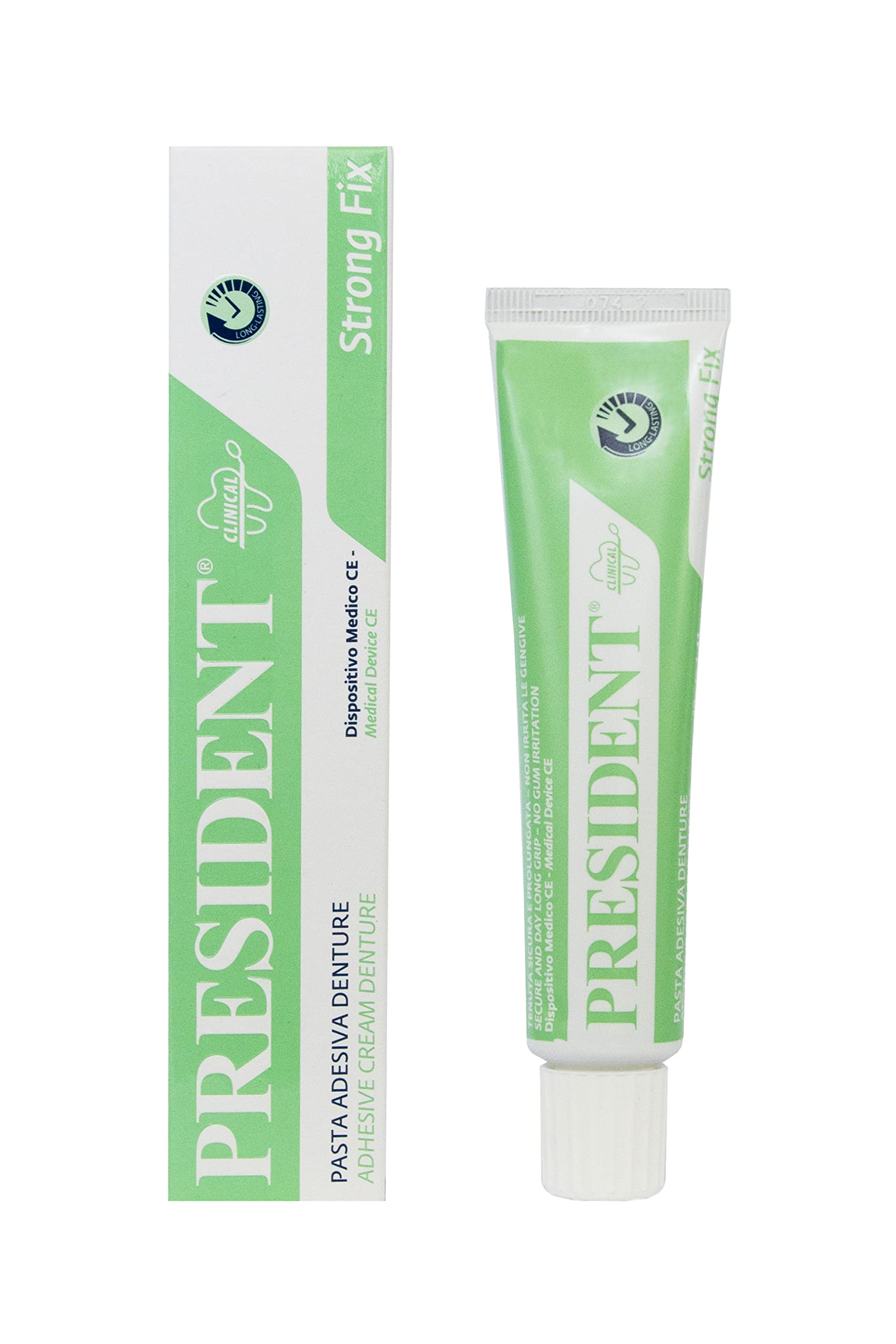 Due to the unique combination of pure and active ingredients, the dental adhesive paste develops a fast bond and lasting adhesion of the teeth to the palate and gums. A balanced complex of copolymers, rubber and resins perfectly seals all gaps between gums and dentures to prevent possible penetration of food and the resulting bad breath. Used in contact with the palate and gums, it can prevent and delay irritating fermentation processes, inflammation on the pressure points of the dental prosthesis, the occurrence of small, disturbing injuries due to aphytous stomatitis. INGREDIENTS Calcium sodium PVM MA copolymer, paraffinum liquidum (mineral oil), cellulose gum, petrolatum, propylene glycol, Chamomilla Recutita (Matricaria) Extract, Tilia Cordata Extract, Aroma (flavour), C.I. 75470 (Carmine) The list of ingredients may change, always refer to the list indicated on the product. INSTRUCTIONS FOR USE Clean the dentures thoroughly and remove any sticky cream residue with a toothbrush and soap and water. Dry the denture thoroughly, as excess water can lead to premature hardening of the paste, which can lead to annoying granulations in the mouth and thus prevent the perfect adhesion of the denture to the gums. Apply a thin layer of adhesive cream along the edges and in the center of the teeth, avoiding external restrictions. Insert the prosthesis by pressing it for a few moments. SAFETY WARNING Pay attention to the warnings on the case. See moreProduct 100 Made in Italy: designed, formulated and produced at the Betafarma S.p.A factory in Cesano Boscone (MI). Use: Clean the dental prosthesis thoroughly and remove any residue of sticky cream with a toothbrush and soap and water. Dry the denture thoroughly, as excess water can lead to premature hardening of the paste, which can lead to annoying granulations in the mouth and thus prevent perfect adhesion of the denture to the gums. Apply a thin layer of adhesive cream along the edges and in the center of the teeth, avoiding external restrictions. Insert the prosthesis by pressing it for a few moments. Prevents inflammation: used in contact with the palate and gums, it can prevent and delay irritating fermentation processes, inflammation on the pressure points of the dental prostheses and the occurrence of small, disturbing injuries due to aphthous stomatitis. PROPERTIES: A balanced complex of copolymers, rubber and resins perfectly seals all gaps between gums and dentures to prevent possible penetration of food and the resulting bad breath. Adhesive paste: thanks to the unique combination of pure and active ingredients, the dental adhesive paste develops a fast bond and lasting adhesion of the teeth to the palate and gums.President Tandkleefpasta: sterke bevestiging van de tandprothese, snelle grip, duurzame hechting, voorkomt het binnendringen van levensmiddelen, ontstekingen en slechte adem - 40 gram Door de unieke combinatie van pure en actieve ingrediënten ontwikkelt de tandlijmpasta een snelle hechting en duurzame hechting van het gebit aan het gehemelte en het tandvlees. Een uitgebalanceerd complex van copolymeren, rubber en harsen dicht alle openingen tussen tandvlees en prothese perfect af om mogelijke penetratie van voedsel en de daaruit voortvloeiende slechte adem te voorkomen. Wordt gebruikt in contact met het gehemelte en het tandvlees, kan het irriterende fermentatieprocessen, ontstekingen op de drukplekken van de tandprothese, het optreden van kleine, storende verwondingen door afyteuze stomatitis voorkomen en vertragen. INGREDIËNTEN Calcium natrium PVM MA copolymeer, paraffinum liquidum (minerale olie), cellulose gum, petrolatum, propyleenglycol, Chamomilla Recutita (Matricaria) Extract, Tilia Cordata Extract, Aroma (smaak), C.I. 75470 (Carmine) De lijst van ingrediënten kan veranderen, let altijd op de lijst die op het product is aangegeven. GEBRUIKSAANWIJZING Reinig de prothese grondig en verwijder eventuele kleverige crème-resten met een tandenborstel en water en zeep. Droog de prothese grondig, omdat overtollig water kan leiden tot voortijdige uitharding van de pasta, wat kan leiden tot vervelende granulaties in de mond en zo de perfecte hechting van de prothese aan het tandvlees kan voorkomen. Breng een dunne laag kleefcrème aan langs de randen en in het midden van het gebit en vermijd externe beperkingen. Plaats de prothese door hem enkele ogenblikken ingedrukt te houden. VEILIGHEIDSWAARSCHUWING Let op de waarschuwingen op het etui. Meer bekijkenProduct 100 Made in Italy: ontworpen, geformuleerd en geproduceerd in de fabriek van Betafarma S.p.A in Cesano Boscone (MI). Gebruik: Reinig de tandprothese grondig en verwijder eventuele resten van kleverige crème met een tandenborstel en water en zeep. Droog de prothese grondig af, omdat overtollig water tot een voortijdige uitharding van de pasta kan leiden, wat tot vervelende granulaties in de mond kan leiden en zo de perfecte hechting van de prothese aan het tandvlees voorkomt. Breng een dunne laag kleefcrème aan langs de randen en in het midden van het gebit en vermijd externe beperkingen. Plaats de prothese door deze enkele ogenblikken ingedrukt te houden. Voorkomt ontstekingen: gebruikt bij contact met het gehemelte en tandvlees, kan het irriterende fermentatieprocessen, ontstekingen op de drukplekken van de tandprothesen en het optreden van kleine, storende verwondingen door afteuze stomatitis voorkomen en vertragen. EIGENSCHAPPEN: Een uitgebalanceerd complex van copolymeren, rubber en harsen dicht alle openingen tussen tandvlees en prothese perfect af om mogelijke penetratie van voedsel en de resulterende slechte adem te voorkomen. Plakpasta: dankzij de unieke combinatie van pure en actieve ingrediënten ontwikkelt de tandlijmpasta een snelle hechting en duurzame hechting van het gebit op het gehemelte en tandvlees.