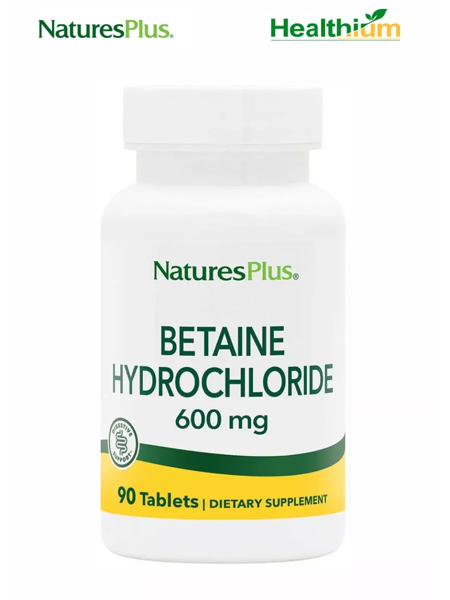 NaturesPlus Betaine Hydrochloride 600 mg 90 tablets is a natural digestive aid that will help you support gastrointestinal health and improve digestion.