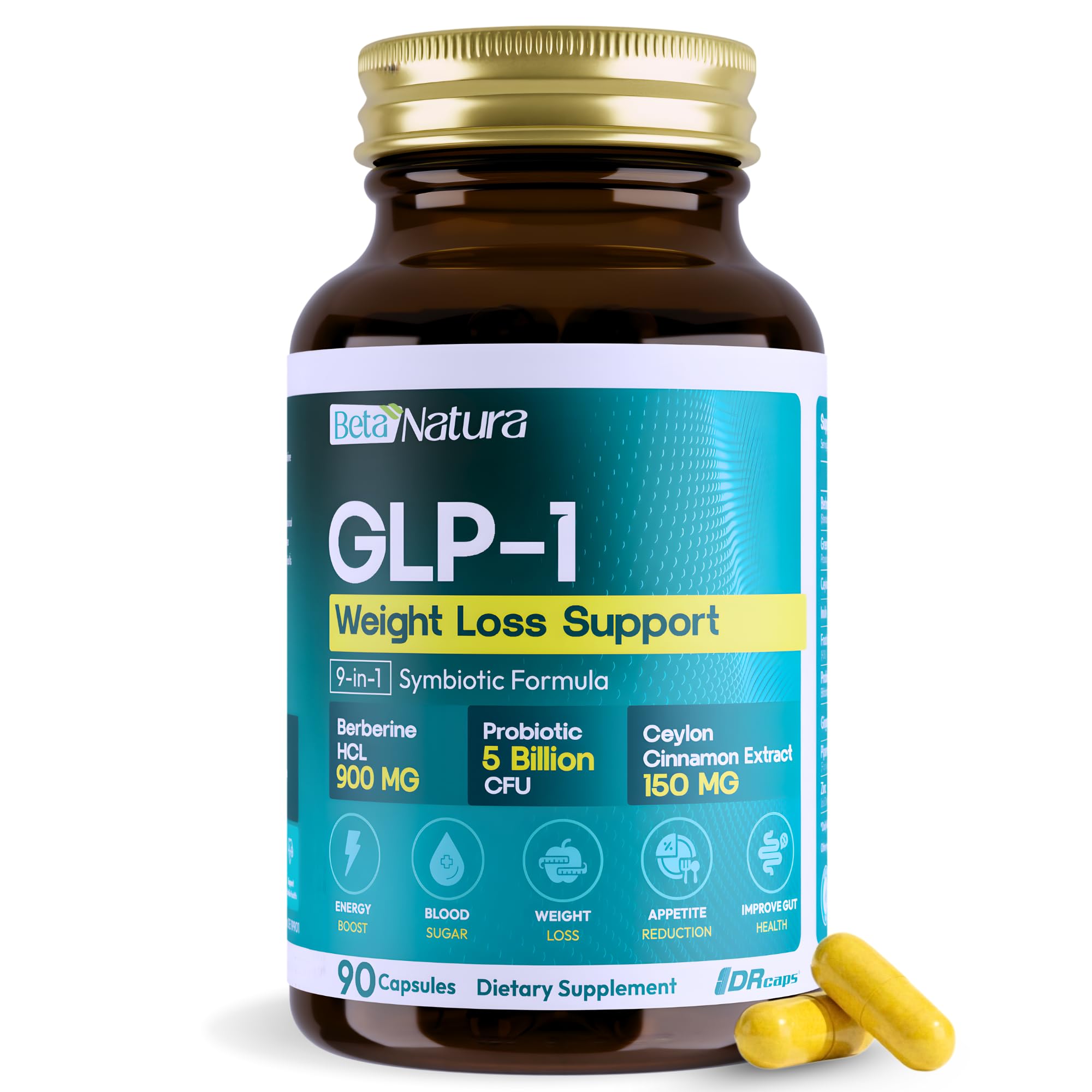 BetaNatura GLP-1 Supplement for Weight Loss Support & Appetite Control for Women & Men with 900 mg Berberine & 5 Billion Probiotics - Hunger & Satiety Support - 90 Veggie Capsules