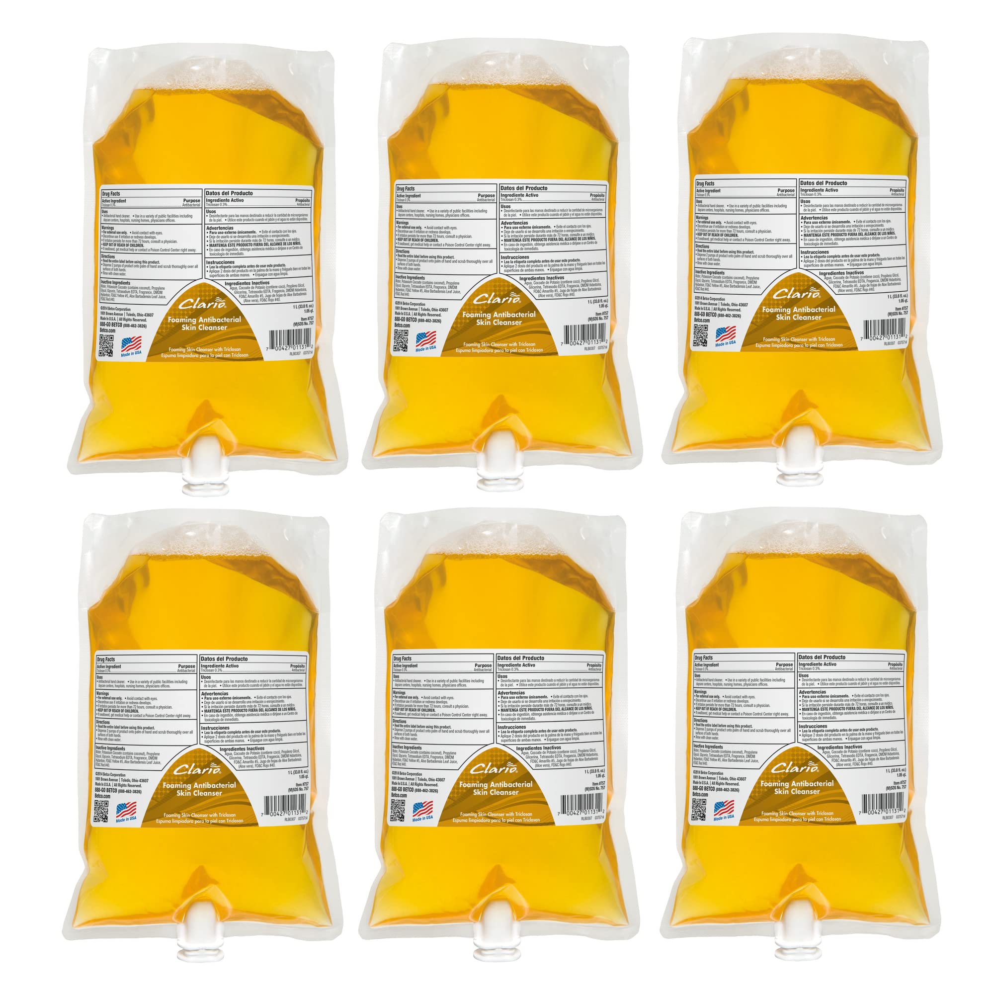 Betco Clario Foaming Skin Cleanser Fresh Neutral Scent 1 000 mL Pack Of 6
