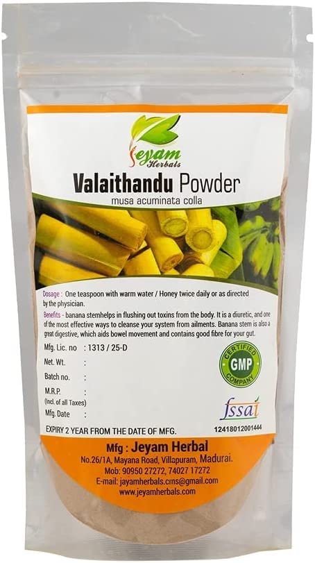 Detoxifies Body. As banana stem has properties that can promote urine production, it helps flush out the toxins from the body. Mixing a dash or cardamom or lime along with the juice offers protection from kidney stones. There is more to the humble banana stem juice than just these ten health benefits. INDICATIONS Valaithandu Powder LEGAL DISCLAIMER Statements regarding dietary supplements have not been evaluated by the FDA and are not intended to diagnose, treat, cure, or prevent any disease or health condition. See more