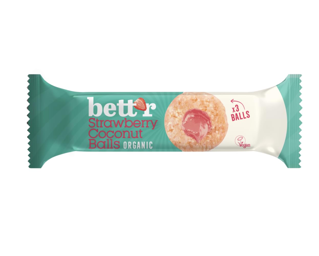 Indulge in the delicious fruity treat of these coconut and strawberry-filled fruit balls. These bite-sized delights are a perfect blend of tropical flavors and sweet, juicy strawberries. The outer layer is a chewy coconut coating that reveals a burst of fruity goodness with every bite. These fruit balls make a great snack or dessert, satisfying your cravings while delivering a delicious taste experience. Enjoy the tropical and berry flavors that dance on your taste buds, making these fruit balls a truly tempting treat. Savor the perfect balance of textures and flavors in every bite. INGREDIENTS Dehydrated coconut (18 ), soluble fiber syrup , date paste , coconut flour (11 ), coconut syrup (11 ), shea butter , roasted cashew nuts , date powder , coconut oil (3.5 ), sweetener: erythritol , strawberry powder (1 ), natural strawberry flavor (0.3 ), beetroot powder , emulsifier: sunflower lecithin .Boules de fruits garnies noix de coco et fraise, Bio, 3 × 15 g, Bett'rDESCRIPTION DU PRODUIT DESCRIPTION DU PRODUIT Laissez-vous tenter par la délicieuse friandise fruitée des boules de fruits garnies de noix de coco et de fraise. Ces délices de la taille d'une bouchée sont un mélange parfait de saveurs tropicales et de fraises sucrées et juteuses. La couche extérieure est un revêtement en noix de coco à mâcher qui laisse place à une explosion de bonté fruitée à chaque bouchée. Ces boules de fruits constituent une excellente collation ou dessert, satisfaisant vos envies tout en offrant une expérience gustative délicieuse. Profitez des saveurs tropicales et de baies qui dansent sur vos papilles gustatives, faisant de ces boules de fruits un plaisir vraiment tentant. Savourez l'équilibre parfait entre textures et saveurs dans chaque bouchée. INGRÉDIENTS Noix de coco déshydratée (18 ), sirop de fibres solubles , pâte de datte , farine de coco (11 ), sirop de noix de coco (11 ), beurre de karité , noix de cajou torréfié , poudre de datte , huile de coco (3,5 ), édulcorant : érythritol , poudre de fraise (1 ), arôme naturel de fraise (0,3 ), être poudre d'étroot , émulsifiant : lécithine de tournesol .