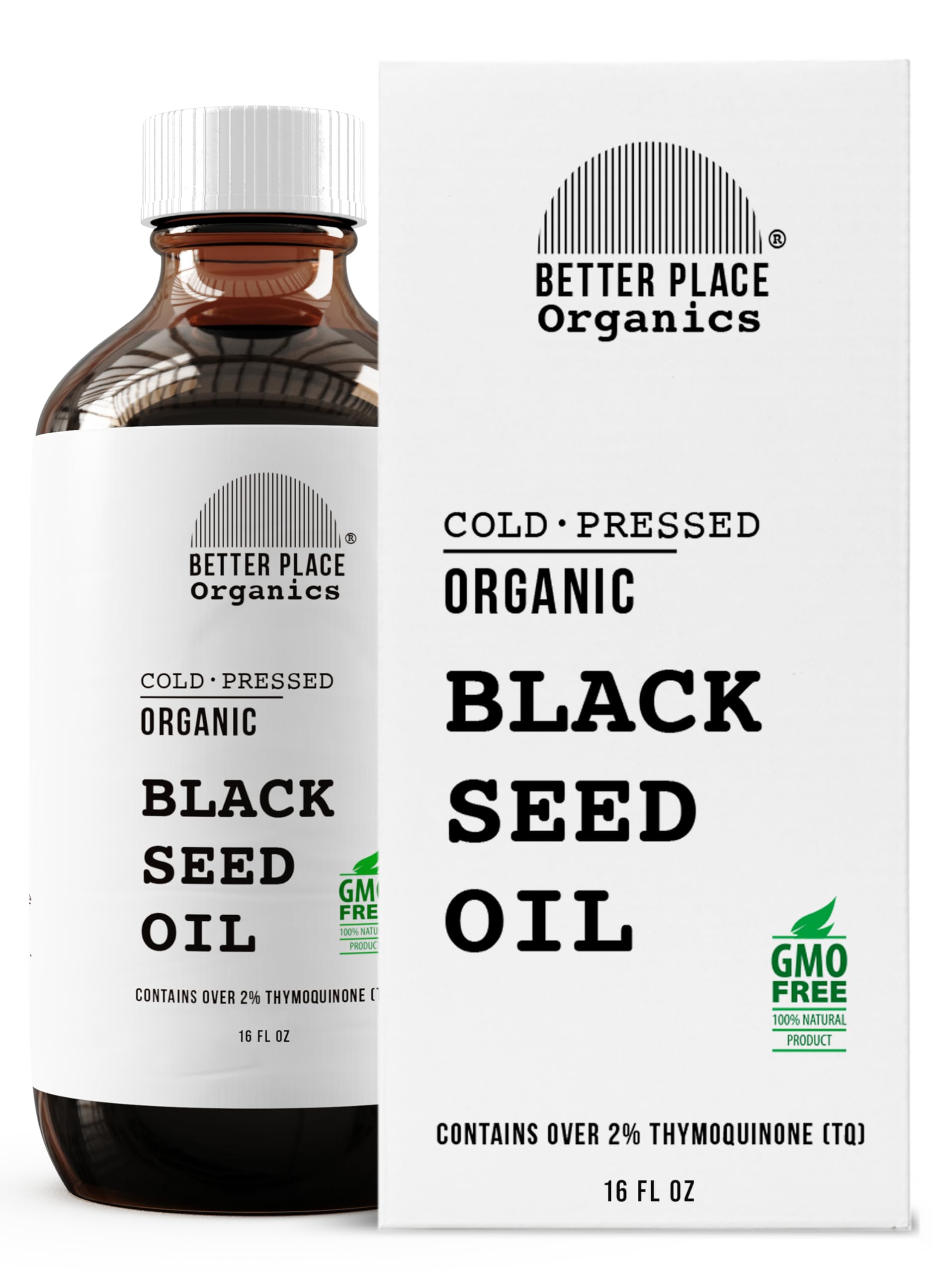 BETTER PLACE ORGANICS Organic Black Seed Oil | 100% Virgin Cold Pressed Liquid Pure | Super Antioxidant | External Use on Joints Hair Skin Nails | 16 oz