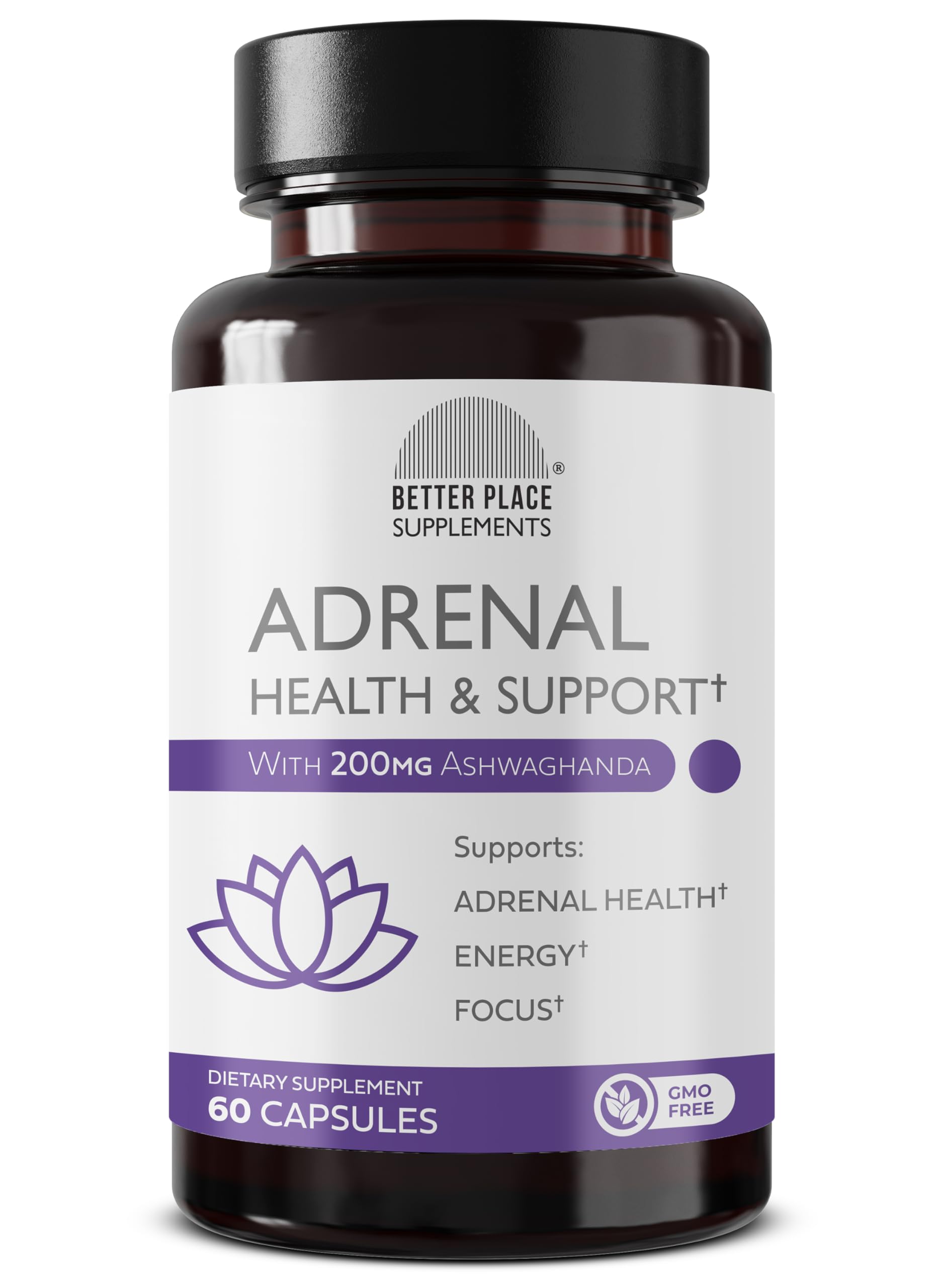 Better Place Supplements Adrenal Health & Support - 60 Capsules | Non-GMO Formula with L-Tyrosine & 200mg Ashwagandha | Supports Energy Focus Fatigue Relief (1)