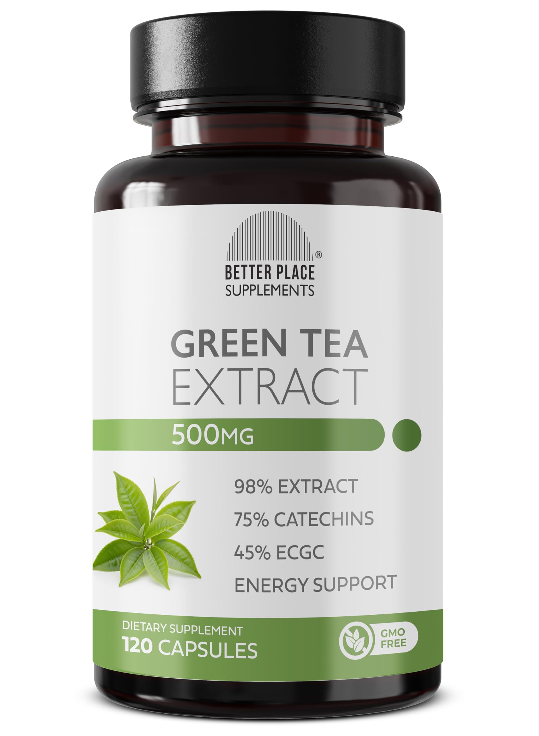 Better Place Supplements Green Tea 98% Extract 500mg | 120 Capsules - 4 Month Supply | 75% Catechins 45% EGCG | Non-GMO Formula | Daily Energy & Antioxidant Support (1)