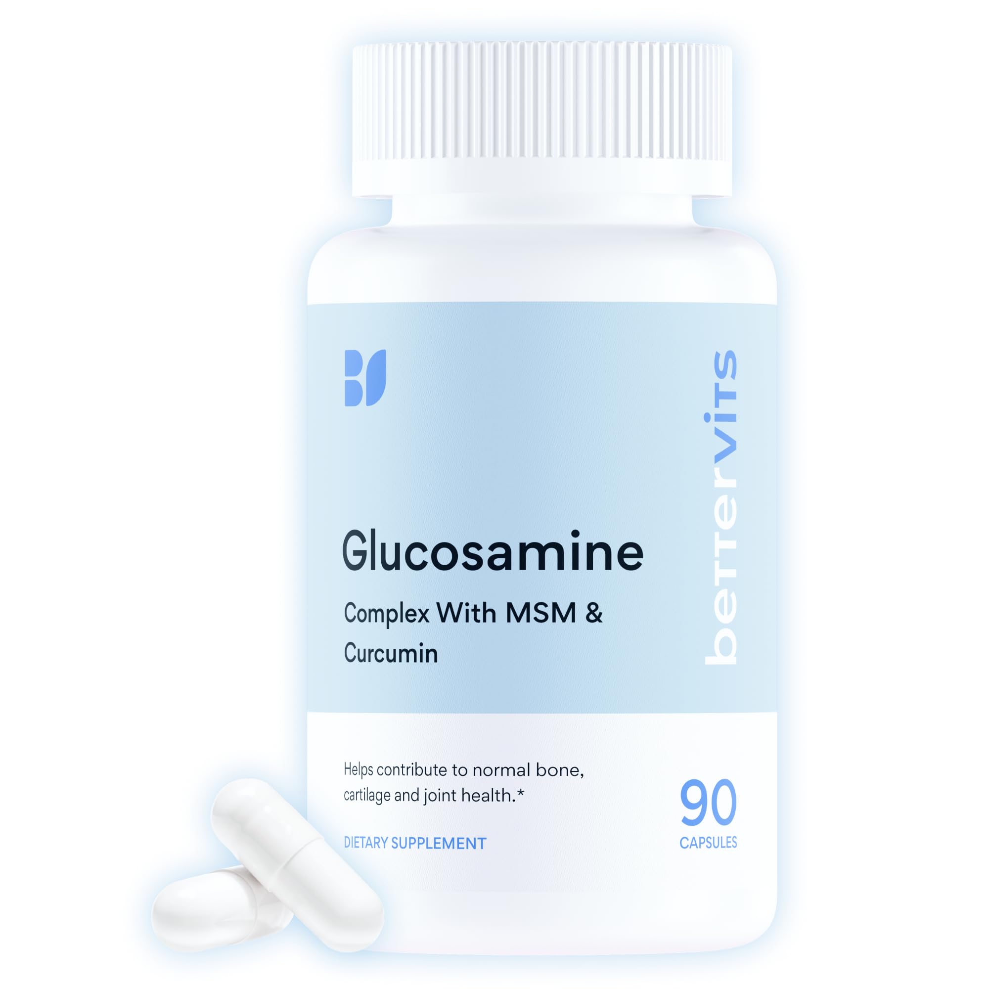 Introducing Bettervits Glucosamine Chondroitin MSM, a comprehensive joint support supplement designed to help you tackle joint pain and improve mobility. This powerful blend of glucosamine chondroitin and MSM works synergistically to support joint health and provide relief from joint stiffness and discomfort. As a leader in joint supplements for women and men, Bettervits offers a formula that caters to individuals seeking an effective solution for joint pain relief, contributing to an active lifestyle without the hindrance of joint discomfort. Whether you're dealing with age-related joint issues or regular wear and tear, Bettervits Glucosamine Chondroitin MSM can enhance your daily life by promoting joint flexibility and overall joint health. Perfect as arthritis supplements, this joint health supplement targets inflammation while promoting the repair of ligament and tendon tissues. Developed with careful precision, the capsules ensure you receive optimal benefits with every dose. See the difference in joint movement, enabling more dynamic and pain-free activity, regardless of your age or lifestyle. Making Bettervits Glucosamine Chondroitin MSM a part of your daily routine means investing in your joint longevity. With our joint support supplement, you can experience improved joint function, allowing you to maintain your favorite activities with ease. Prioritize your joint care with Bettervits and feel the results in your day-to-day performance—your joints will thank you for it.Crafted with glucosamine and chondroitin, MSM, and naturally sourced Boswellia Serrata. Free from GMOs, gluten, and dairy. Produced in a GMP-certified U.S. facility and third-party tested for purity and potency — providing the quality you can trust in a clean joint supplement. Optimal Joint Health - Convenient, easy-to-swallow tablets designed for daily use. Take as part of your wellness routine to help maintain flexible, comfortable joints and support bone and muscle function — ideal for active adults and anyone seeking a reliable glucosamine chondroitin MSM supplement for long-term mobility. Cartilage Connective Tissue Support - Glucosamine and chondroitin are natural building blocks of healthy cartilage. Together with vitamin C, which contributes to normal collagen formation, this formula promotes strong connective tissue and supports the body's natural joint structure for long-term wellness. Supports Mobility Flexibility - Our glucosamine chondroitin MSM formula delivers essential nutrients that help maintain joint integrity, smooth movement, and everyday comfort. Enhanced with MSM, this advanced joint support supplement provides synergistic nourishment for connective tissue, promoting mobility, flexibility, and active joint function for both women and men. Advanced Glucosamine Chondroitin MSM Formula - Experience complete joint nourishment with Bettervits Glucosamine Complex, combining glucosamine, chondroitin, MSM to support cartilage structure, joint mobility, and flexibility. Designed for both women and men, this high-strength blend helps maintain joint comfort for everyday movement and activity.