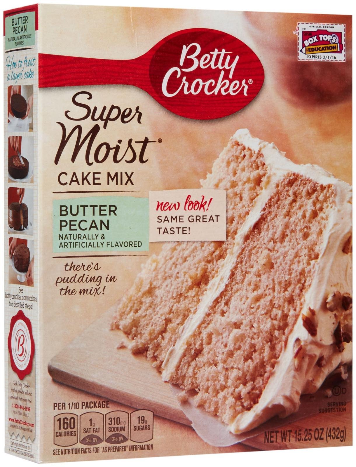 A delicious dessert is only minutes away with this Betty Crocker Super Moist Butter Pecan Mix. This super moist cake mix has pudding added to it. Easy to make and great tasting.