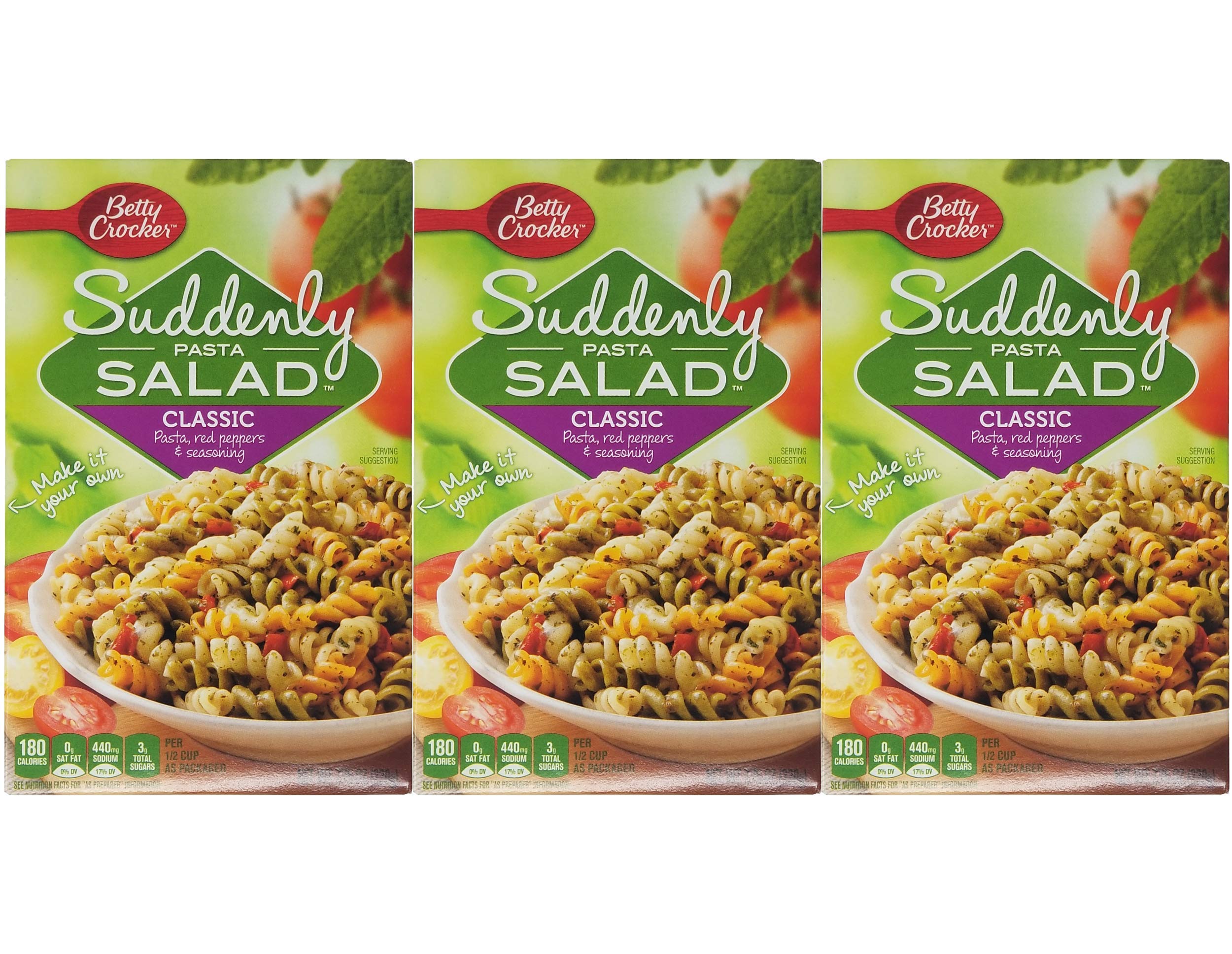 Betty Crocker Suddenly Salad, Classic Pasta, 7.75 oz, 3 pkReady in Minutes. Makes 4 servings. Classic side dish. Betty Crocker Pasta Salad, 7.75 oz. Homestyle pasta salad mix.