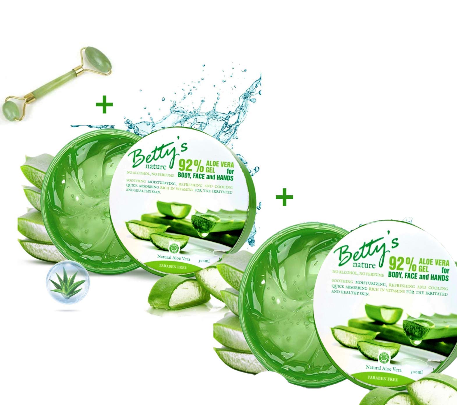 Just'Natur selects Betty'nature Natural Aloe Vera Gel for you. Paraben-free, alcohol-free, and fragrance-free, it's suitable for face, body, hands, and hair. Made with aloe vera – we carefully select healthy, mature leaves and rinse them thoroughly before making the aloe gel. INGREDIENTS Take care of your skin✓Effects: This product has multiple effects and can be used as a mask or face cream. It has firming, moisturizing, and soothing properties, leaving skin healthy and radiant. (Before applying it to your face, a patch test is recommended.) ✓Made with Aloe Vera - We carefully select healthy, mature leaves and rinse them thoroughly before making aloe vera gel. It is then processed into aloe vera gel. It effectively nourishes the skin and contains numerous antioxidants to keep skin healthy. It has a soothing effect on the skin and relieves itching, insect bites, and sunburn. ✓For face, hands, body and hair✓Can be used as a hair mask. ✓Natural product, paraben-free, alcohol-free, fragrance-free✓Deeply and quickly hydrates with a refreshing sensation without leaving a sticky residue.Lot de 300ml x 2 Gel Aloe Vera Gel Naturel Sans Paraben, Sans Parfum, Sans Alcool, Gel Hydratant, Apaisant Naturel Un Roller pour massage visage corps en Pierre JadeDESCRIPTION DU PRODUIT DESCRIPTION DU PRODUIT Just'Natur choisit pour vous le gel d'Aloe Vera de Betty'nature Naturel sans paraben, sans alcool, sans Parfum pour le visage, corps, mains et cheveux. Fabriqué avec de l'aloe vera - Nous sélectionnons avec soins les feuilles saines et matures et nous les rinçons soigneusement avant de faire gel d'aloès. Il est ensuite transformé en un gel d'aloès. INGRÉDIENTS Prendre soins de votre peau✓Effets: Le produit a de multiples effets, utilisables comme masque, crème pour le visage, il y a des effets comme raffermissants, hydratants, apaisants ect, rendent la peau saine et brillante. (Avant de l'appliquer sur votre visage, des tests sensibles sur la peau topique sont recommandés.). ✓Fabriqué avec de l'aloe vera - Nous sélectionnons avec soin les feuilles saines et matures et nous les rincons soigneusement avant de faire gel d'aloès. Il est ensuite transformé en un gel d'aloès. Nourrit efficacement la peau et contient de nombreux antioxydants pour garder la peau en bonne santé. Il a un effet apaisant sur la peau et soulage les démangeaisons, les piqûres d'insectes et les coups de soleil.Nourrit efficacement la peau et contient de nombreux antioxydants pour garder la peau en bonne santé. Il a un effet apaisant sur la peau et soulage les démangeaisons, les piqûres d'insectes et les coups de soleil. ✓Pour le visage, les mains, le corps et cheveux✓Peut être utiliser en tant que masque Capillaire. ✓Produit Naturel, sans Paraben, sans Alcool, sans parfum✓Hydrate en profondeur et de manière rapide avec sensation de fraîcheur sans coller à la peau.