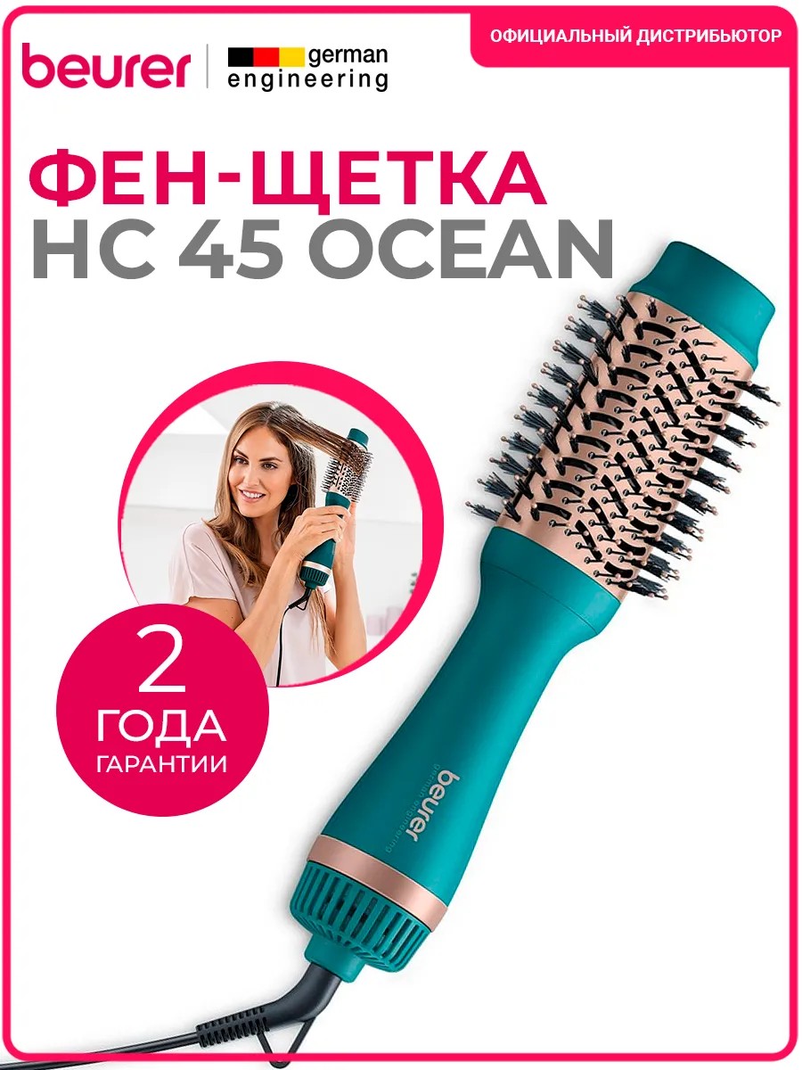 Фен щетка Beurer HC 45 Ocean позволяет одновременно сушить и укладывать волосы за один шаг. Фен с брашингом имеет керамическое покрытие с кератином обеспечивает достаточную защиту во время укладки. Овальная форма создает объем у самых корней. 2 уровня нагрева и интенсивности потока. Режим подачи холодного воздуха для фиксации укладки. Специальная комбинация щетинок мягко и бережно распутывает волосы. Функция ионизации для шелковистых и блестящих волос. Мощность 1000 ватт. Вращение шнура на 360 градусов. Практичная петля для подвешивания. Имеется автоматическая защита от перегрева.