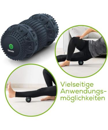 Beurer MG 35 Deep Roll massage roller with vibration - deep -effective muscle relaxation The massage roll MG 35 from Beurer is suitable for the deep -effective trigger point massage.The fascia tissue can be loosened and fascia adhesive can be solved.The fascia roll has three vibration institutions and a special surface structure that ensures a pleasant and individually customizable massage experience.Three rotatable rolling units enable flexible applications all over the body and always adapt to their body movements.Instructions due to production, it happens that the rubber exudes an artificial smell in the first few days, but should let up after a few days.The device should also be used on clean, not crushed skin.It is important that the device is only cleaned with a damp cloth - sharp cleaning agents or brushes can attack the material and lead to discoloration The most important properties of the MG 35 deep roll Targeted trigger point massage tensed muscle parts Can solve fascia adhesive and hardening 3 intensity levels 1 massage mode 3 rotatable rolling units Deeply effective thanks to a special structure Applicable while standing, sitting or lying down Easy to clean surface Versatile can be used by battery operation - at home and on the go Ergonomically shaped Product dimensions (L x W x H) 15.6 x 8.7 x 8.7 cm Product weight approx. 746g Set contains: Mg 35 massage roller USB charging cable Instructions for usecomfort hygiene: The surface material of the MG 35 vibration roller feels comfortable on the skin and can be easily cleaned after use.For the whole body: The massage device has three movable rolling units that adapt to your body movements and enables an application all over the body, while standing, sitting or lying down.Flexible application: Whether at home or on the go - the massage roller can be used in many ways through battery operation and is suitable for warm -up or regeneration after training.Vibration function: The fascia roll has three vibration levels, which you can change individually according to personal feeling or each body region.Trigger point massage: The massage roller enables a deep massage and can solve fascia adhesive and muscle hardening using vibration function and soft-touch surface structure.Beurer MG 35 Deep Roll Massagerolle mit Vibration - Tiefenwirksame Muskelentspannung Die Massagerolle MG 35 von Beurer eignet sich zur tiefenwirksamen Triggerpunktmassage. Dabei kann das Fasziengewebe gelockert und Faszienverklebungen gelöst werden. Die Faszienrolle verfügt über drei Vibrations-Intenstitätsstufen und eine besondere Oberflächenstruktur, die für ein angenehmes und individuell anpassbares Massageerlebnis sorgt. Drei drehbare Rolleinheiten ermöglichen flexible Anwendungen am ganzen Körper und passen sich stets an Ihre Körperbewegungen an. Anleitung Produktionsbedingt kommt es vor, dass der Gummi in den ersten Tagen einen künstlichen Geruch verströmt, der aber nach einigen Tagen nachlassen sollte. Das Gerät sollte auch auf sauberer, nicht eingecremter Haut verwendet werden. Wichtig ist, dass das Gerät nur mit einem feuchten Tuch gereinigt wird - scharfe Reinigungsmittel oder Bürsten können das Material angreifen und zu Verfärbungen führen Die wichtigsten Eigenschaften der MG 35 Deep Roll Gezielte Triggerpunkt-Massage verspannter Muskelpartien Kann Faszienverklebungen und Verhärtungen lösen 3 Intensitätsstufen 1 Massagemodus 3 drehbare Rolleinheiten Tiefenwirksam dank besonderer Struktur Anwendbar im Stehen, Sitzen oder Liegen Leicht zu reinigende Oberfläche Vielseitig einsetzbar durch Akkubetrieb - zu Hause und unterwegs Ergonomisch geformt Produktmaße (L x B x H) 15,6 x 8,7 x 8,7 cm Produktgewicht ca. 746g SET ENTHÄLT: MG 35 Massagerolle USB-Ladekabel GebrauchsanleitungKomfort Hygiene: Das Oberflächenmaterial der MG 35 Vibrationsrolle fühlt sich angenehm auf der Haut an und kann nach der Anwendung einfach gereinigt werden. Für den ganzen Körper: Das Massagegerät besitzt drei bewegliche Rolleinheiten, die sich an Ihre Körperbewegungen anpassen und eine Anwendung am ganzen Körper, im Stehen, Sitzen oder Liegen ermöglicht. Flexible Anwendung: Ob zu Hause oder unterwegs - die Massagerolle ist durch den Akkubetrieb vielseitig einsetzbar und eignet sich zum Aufwärmen oder zur Regeneration nach dem Training. Vibrationsfunktion: Die Faszienrolle verfügt über drei Vibrationsstufen, welche Sie nach persönlichem Empfinden oder je Körperregion individuell ändern können. Triggerpunktmassage: Die Massagerolle ermöglicht mittels Vibrationsfunktion und Soft-Touch-Oberflächenstruktur eine tiefenwirksame Massage und kann Faszienverklebungen und Muskelverhärtungen lösen.Beurer MG 35 Deep Roll Massagerolle mit Vibration, Faszienrolle zur Triggerpunktmassage, 3 Intensitätsstufen, Massagemodus, vielseitig anwendbar, tiefenwirksam Massagerolle Single