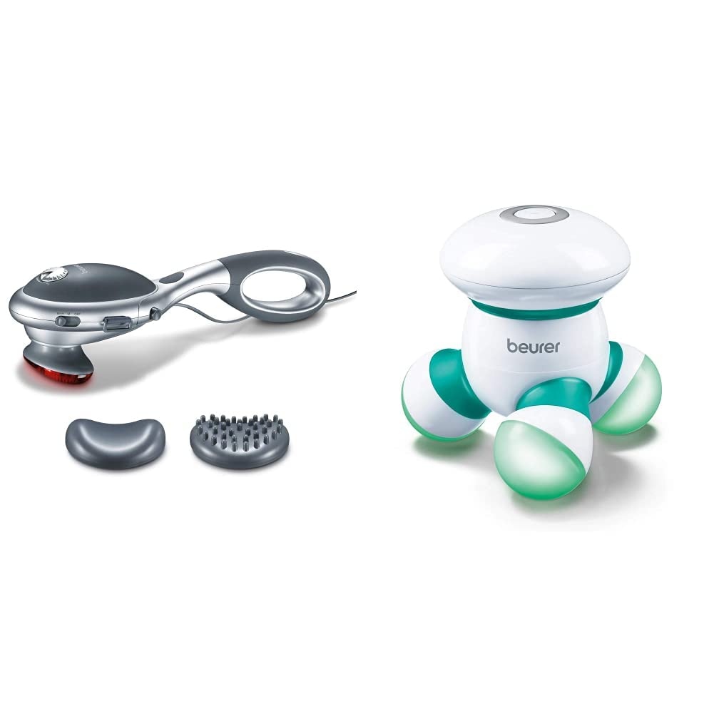 Beurer MG 70 Infrared Massage device, knock massage, for massage of back, neck, arms, legs, two different attachments, infrared heat function The Beurer MG 70 knock massager-for a strong and deep-effective tap massage on shoulders, neck, back and legs.With two interchangeable massage attachments and continuously adjustable massage intensity for an individual relaxation massage.Whether after a stressful working day or long sitting, with the knock massage device from Beurer, you can transform your home into a place of relaxation.During the treatment you can choose between a massage with or without a handle.With an attached handle, you particularly easily massage the neck, back or shoulders.The handle can be removed for an application on the legs.Product properties of the massage device: powerful tapping massage for soothing relaxation with a removable handle with hand loop with a Velcro fastener Infrared heat Separate Separate Surface temperature at infrared use: approx. 45 ° C (at room temp. Of 22 ° C) Massage speed continuously adjustable.This type of massage has a powerful and rhythmic tapping movements into the deeper muscle layers and can thus ensure deeply effective relaxation.A targeted application to the pain points ensures the sustainable feeling of well -being, relaxation and relaxation of the muscles A massage device many possible treatment spuns: By the universal use of the massage, you get several devices in one: neck massage device red light massage device shoulder massage device shoulder massage device. What uses a tap massage?Sitting for a long time, working on the PC or sporting activity can lead to shoulder or neck pain or heavy legs.The knock massage of the MG 70 can loosen muscles and tension, promote blood circulation and have a liberating effect.The aim of this application is to increase physical, emotional and intellectual well -being Beurer MG 16 mini massage, green Massage-to-go Relaxation for in between Ideal for back, neck, arms and legs Small and handy Gentle vibration massage With LED light Product dimensions (LXBXH): 9.8 x 9.8 x 9.5 cm Weight: 160 g product 2: gentle vibration massage.Product 2: Small and handy.Product 2: Ideal for back, neck, arms and legs.Product 2: Relaxation for in between.Product 1: Two functional levels: Choose knock massage or infrared massage with warmth and make a wellness experience at home, another advantage: the massage intensity is infinitely adjustable.Product 1: Two interchangeable essays: The soft attachment and the knobing attachment can be easily exchanged by plugging in, for universal use of the electrical hand massage device and an intensive relaxation massage.Product 1: versatile: The removable handle makes the massage on every body region very simple, without a handle the device is particularly well suited for the leg massage, with a handle particularly well suited for the back massage.Product 1: Soothing knock massage for the whole body: relaxed shoulders, neck, back and legs after sporting efforts, a stressful working day or just in between.Size: LXBXH: 38 x 23 x 10 cm. Beurer MG 70 Infrarot Massagegerät, Klopfmassage, zur Massage von Rücken, Nacken, Arme, Beine, zwei verschiedene Aufsätze, Infrarotwärmefunktion Das Beurer MG 70 Klopf-Massagegerät – für eine kräftige und tiefenwirksame Klopfmassage an Schultern, Nacken, Rücken und Beinen. Mit zwei austauschbaren Massageaufsätzen und stufenlos einstellbarer Massageintensität für eine individuelle Entspannungsmassage. Ob nach einem stressigen Arbeitstag oder langem Sitzen, mit dem Klopf-Massagegerät von Beurer können Sie Ihr Zuhause in einen Ort der Entspannung verwandeln. Bei der Behandlung können Sie zwischen einer Massage mit oder ohne Griff wählen. Mit angebrachtem Griff massiert man besonders einfach Nacken, Rücken oder Schultern. Für eine Anwendung an den Beinen kann der Griff abgenommen werden. Produkteigenschaften des Massagegeräts: Kraftvolle Klopfmassage für wohltuende Entspannung Mit abnehmbarem Griff mit Handschlaufe mit Klettverschluss Infrarotwärme separat zuschaltbar Oberflächentemperatur bei Infrarotanwendung: ca. 45°C (bei Raumtemp. von 22°C) Massagegeschwindigkeit stufenlos einstellbar Zwei abnehmbare Massageaufsätze Gewicht: ca. 1 kg Mit kraftvollen und rhythmischen Klopfbewegungen wirkt diese Art der Massage bis in die tieferen Muskelschichten und kann so für tiefenwirksame Entspannung sorgen. Eine gezielte Anwendung an den Schmerzpunkten sorgt für das nachhaltige Wohlgefühl, Entspannung und Lockerung der Muskulatur Ein Massagegerät viele mögliche Behandlungspunke : Durch den universellen Einsatz des Massagers erhalten Sie mehrere Geräte in einem: Nackenmassagegerät Rückenmassagegerät Rotlichtmassagegerät Beinmassagegerät Schultermassagegerät Fußmassagegerät Was bewirkt eine Klopfmassage? Durch langes Sitzen, Arbeiten am PC oder auch sportliche Aktivität kann es zu Schulter- oder Nackenschmerzen oder schweren Beinen kommen. Die Klopfmassage des MG 70 kann Muskeln und Verspannungen lockern, die Durchblutung fördern und befreiend wirken. Das Ziel dieser Anwendung ist das physische, emotionale und geistige Wohlbefinden zu steigern Beurer MG 16 Mini-Massager, grün Massage-to-go Entspannung für Zwischendurch Ideal für Rücken, Nacken, Arme und Beine Klein und handlich Sanfte Vibrationsmassage Mit LED-Licht Produktmaße (LxBxH): 9,8 x 9,8 x 9,5 cm Gewicht: 160 gProdukt 2: Sanfte Vibrationsmassage. Produkt 2: Klein und handlich. Produkt 2: Ideal für Rücken, Nacken, Arme und Beine. Produkt 2: Entspannung für Zwischendurch. Produkt 1: Zwei Funktionsstufen: Wählen Sie Klopfmassage oder Infrarotmassage mit Wärme und machen aus einer Massage zu Hause ein Wellnesserlebnis, weiterer Vorteil: Die Massageintensität ist stufenlos einstellbar. Produkt 1: Zwei auswechselbare Aufsätze: Der Softaufsatz und der Noppenaufsatz lassen sich einfach durch Aufstecken austauschen, für eine universelle Nutzung des elektrischen 