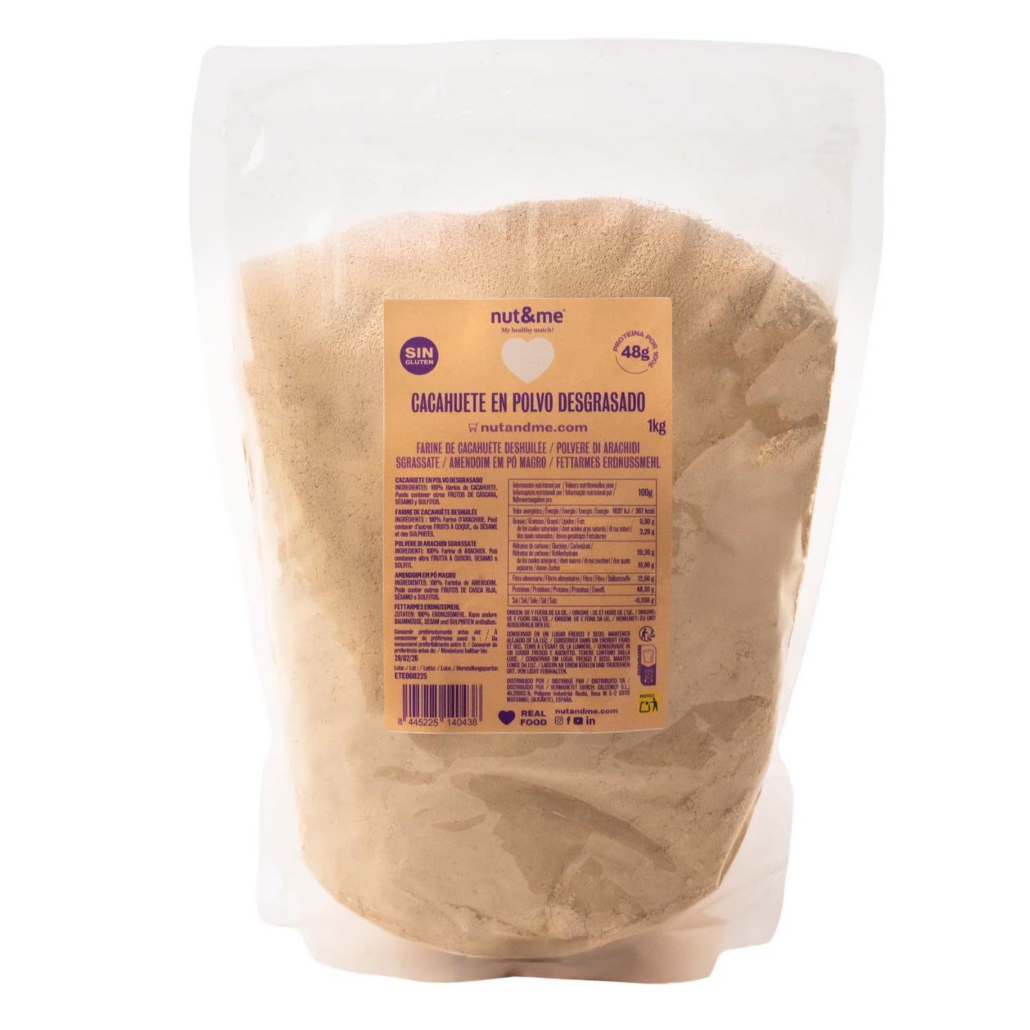 Beurre de cacahuète en poudre sans matières grasses 1 kg nut me 100 naturel et végétalien Peanut Butter Powder Protéines de haute qualité Sans gluten