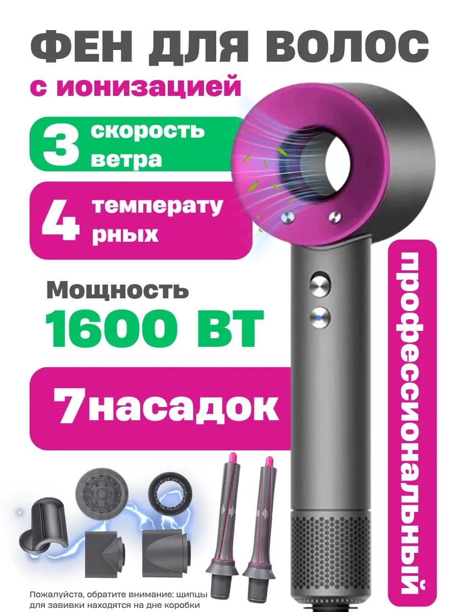 Фен для волос включает 7 аксессуаров. Рассеиватель для фена: используется для рассеивания воздуха; бигуди для завивки волос: легко создают красивые локоны, сочетая сушку, завивку и придание объема в одном инструменте. Две плойки для локонов с эффектом Коанды притягивают волосы и создают идеальную кудрявую прическу.