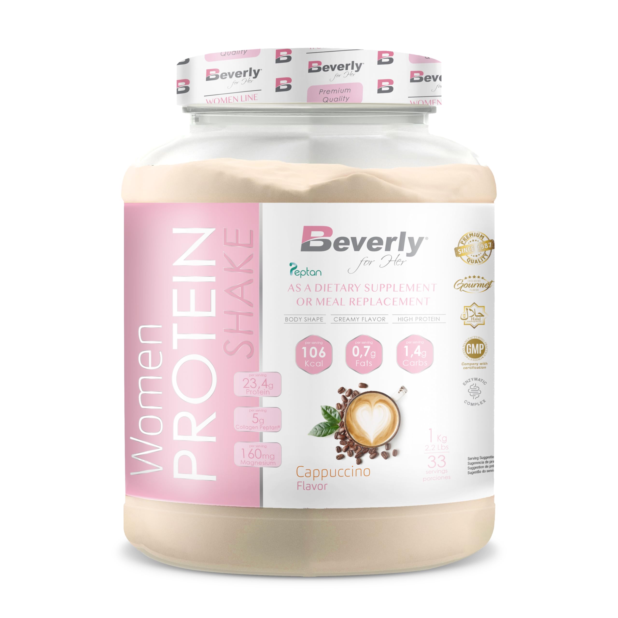 New exclusive protein for women: advanced nutrition with Peptan collagen and active nutrients. This protein is specially formulated for women, designed not only to supplement your daily diet but also to care for your skin, joints, and overall well-being. Our premium formula combines a high-quality protein isolate and concentrate, the renowned Peptan marine collagen, magnesium citrate, and vitamin E. This protein is not just for athletes, but for anyone who wants to feel good and improve their appearance from within. INGREDIENTS Whey protein isolate and concentrate, cocoa powder (chocolate flavor), beetroot (strawberry flavor), beta-carotene (small flavor), Peptan marine collagen, flavoring, magnesium citrate, vitamin E, salt, Digezyme, and Tolerase-L.Skin care and elasticity with ingredients that protect and regenerate from within. Antioxidant effect that protects against oxidative stress and contributes to radiant, youthful skin. Helps reduce tiredness and maintain energy throughout the day, minimizing fatigue. Stronger, healthier hair, skin, and nails thanks to collagen and vitamin E. Improves joint health, which is especially beneficial for those looking to prevent wear and tear and maintain mobility. Promotes body toning and the maintenance of muscle mass, which is essential for a healthy metabolism. Muscle support and recovery after every workout, thanks to its high protein and magnesium content. Women-specific protein shake with Peptan marine collagen, magnesium, and vitamin E. Designed not only to complement your daily diet but also to care for your skin, joints, and overall well-being.Beverly Women Protein - Protéine de lactosérum spéciale pour femmes avec collagène marin, magnésium et vitamine E - 1 kg - 24 g de protéines par portion - 33 portions - Saveur (1 KG, CAPUCCINO) CAPUCCINO 1 KGDESCRIPTION DU PRODUIT DESCRIPTION DU PRODUIT Nouvelle protéine exclusive pour les femmes : nutrition avancée avec du peptan collagène et des nutriments actifs. Voici une protéine spécialement formulée pour les femmes, conçue non seulement pour compléter votre alimentation quotidienne, mais aussi pour prendre soin de votre peau, de vos articulations et de votre bien-être général. Notre formule haut de gamme associe un isolat et un concentré de protéines de haute qualité, le célèbre collagène marin Peptan, du citrate de magnésium et de la vitamine E. Cette protéine n'est pas seulement destinée aux sportives, mais à toutes celles qui veulent se sentir bien et améliorer leur apparence de l'intérieur. INGRÉDIENTS Isolat et concentré de protéines de lactosérum, Poudre de cacao (arôme chocolat), Betterave (arôme fraise), Bêta-carotène (petit arôme), Collagène marin Peptan, Arôme, Citrate de magnésium, Vitamine E, Sel, Digezyme et Tolérase-L.Soin de la peau et de l'élasticité de la peau avec des ingrédients qui protègent et régénèrent de l'intérieur. Effet antioxydant qui protège contre le stress oxydatif et contribue à une peau éclatante et jeune. Aide à réduire la fatigue et à garder de l'énergie tout au long de la journée, minimisant ainsi la fatigue. Des cheveux, une peau et des ongles plus forts et plus sains grâce au collagène et à la vitamine E. Améliore la santé des articulations, ce qui est particulièrement bénéfique pour ceux qui cherchent à éviter l'usure et à maintenir leur mobilité. Favorise la tonification du corps et le maintien de la masse musculaire, ce qui est essentiel pour un métabolisme sain. Soutien musculaire et récupération après chaque entraînement, grâce à sa teneur élevée en protéines et en magnésium. Shake protéiné spécifique aux femmes avec du collagène marin Peptan, du magnésium et de la vitamine E. Conçu non seulement pour compléter votre alimentation quotidienne, mais aussi pour prendre soin de votre peau, de vos articulations et de votre bien-être général.