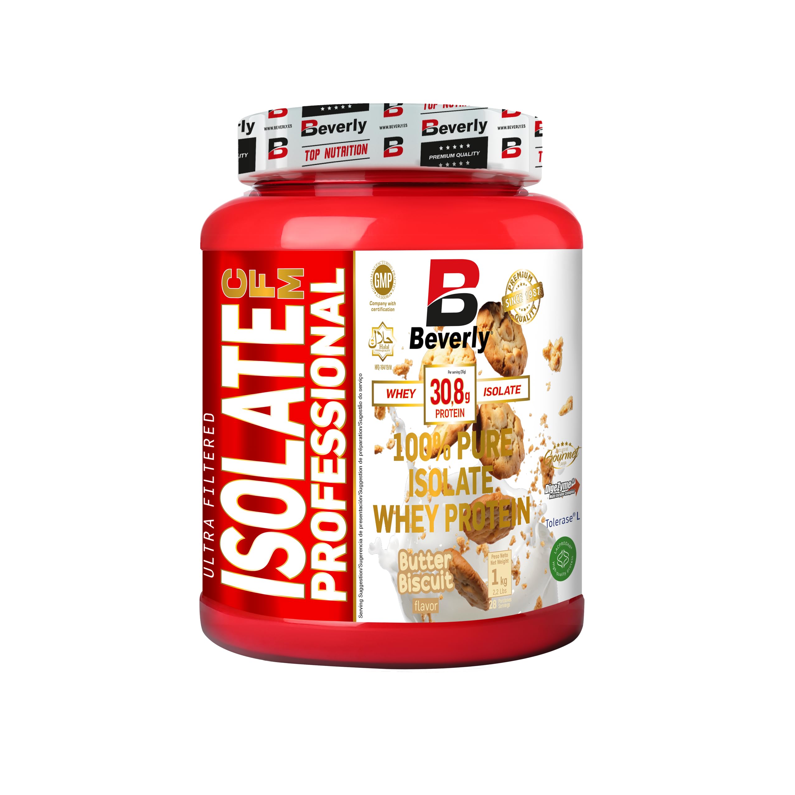 ? QUALITY GUARANTEE. We are GMP and Halal certified. With GMP certification, we guarantee not only the best raw materials but also the highest quality standards for all our products. Our commitment to the Muslim market has led us to become one of the first brands in the world of sports nutrition with the Halal seal. We are Beverly Nutrition, a company with over 37 years of experience in the industry. ? ISOLATE CFM provides you with over 30g of protein in every shake, depending on the flavor. ? With ISOLATE CFM, we don't add any extra ingredients that increase sugars, calories, or fats. A protein isolate with no fillers, no added sugars. Only the highest quality protein. ? ISOLATE CFM offers 6 delicious flavors so you'll never get tired of our protein. ? ISOLATE CFM incorporates Tolerase L and Digezyme in its formula, which eliminates all traces of lactose and improves the digestibility and assimilation of the product. ? ISOLATE CFM is made from 100 Lacprodan whey protein isolate from Arla Foods Ingredients, considered one of the best patented whey proteins in the world.