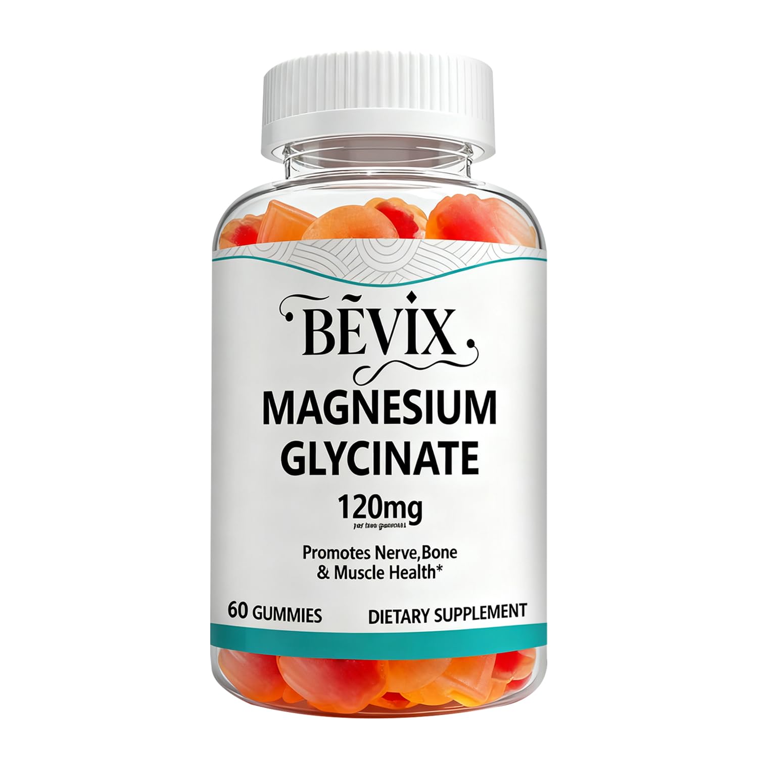 BEVIX Magnesium Glycinate Gummies High Absorption 120mg for Adults Magnesium Glycinate Complex Gummies 60 Count (Pack of 1)