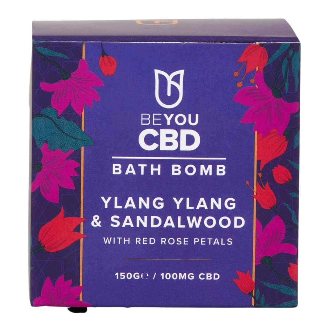 BeYou CBD Bath Bomb - Ylang Ylang & Sandalwood with Red Rose Petals | 100% Pure & Natural Oils | 100mg CBD | Soothe Relax & Restore Sore Muscles