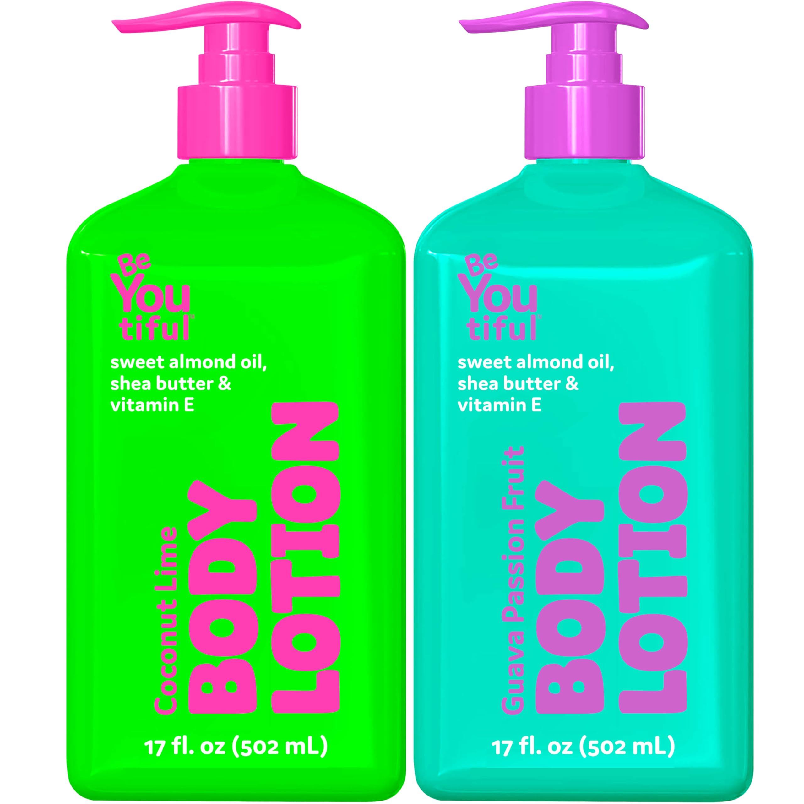 BeYoutiful Natural Hydrating Body Lotion Variety Pack for Kids & Teens Guava Passionfruit & Coconut Lime Moisturizer Set for Dry Skin Cruelty-Free Sweet Almond Oil & Vitamin E 2-Pack 17oz