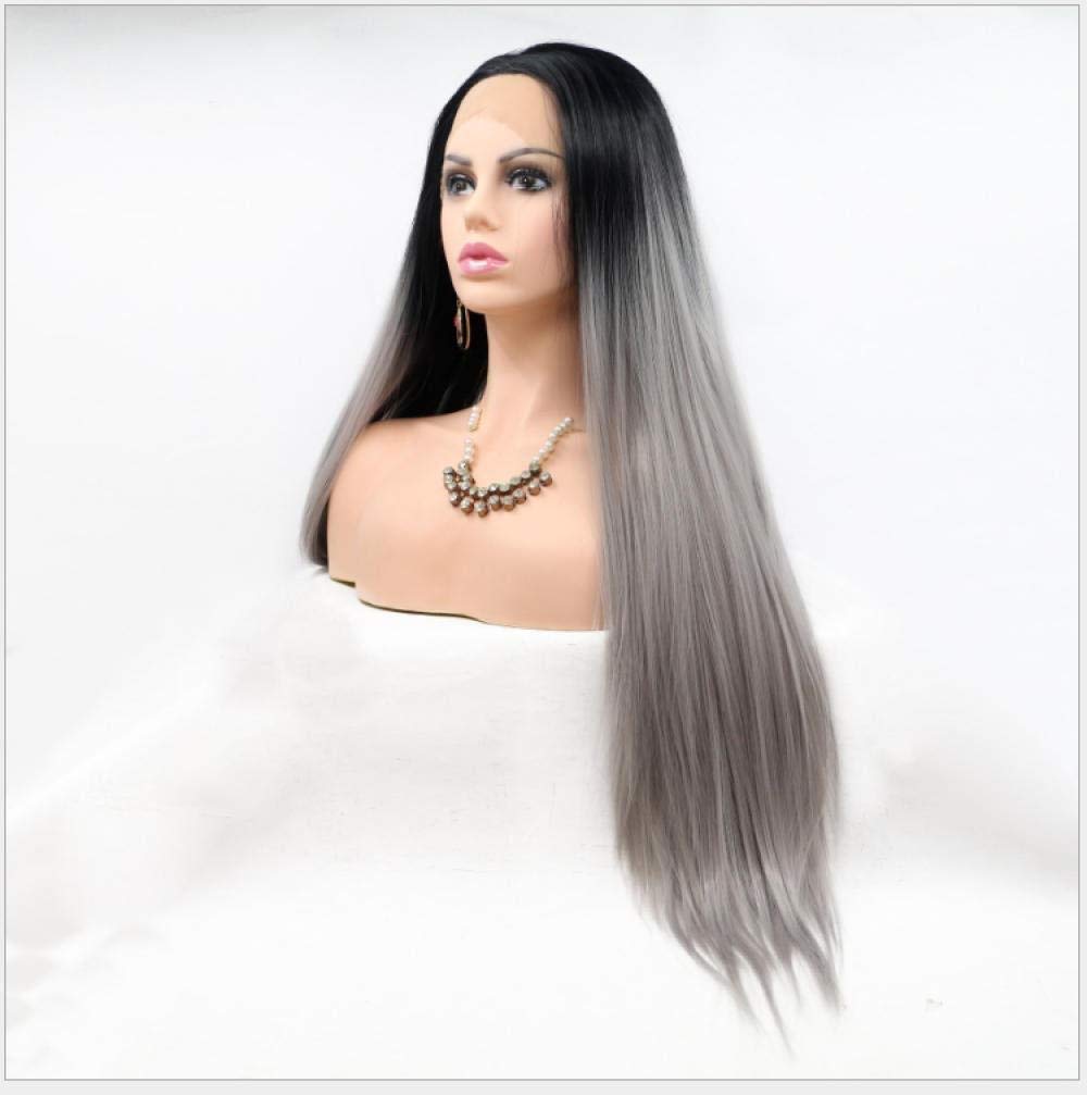BGHJUE Wig Accessories Long Natural Wigs For Women Side Parting Highlighted Synthetic Wig High Temperature Fiber Breathable Wig Cap Gray Long Straight