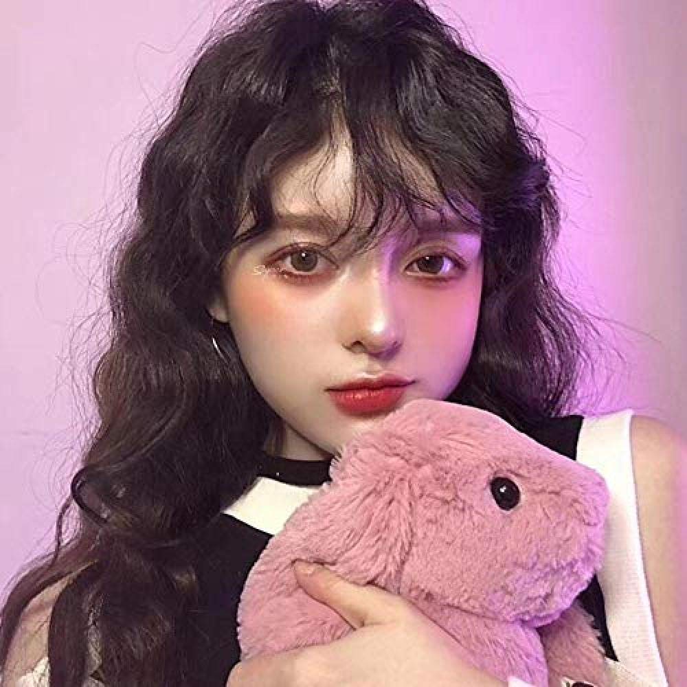BGHJUE Wig black brown bubble head wool roll corn hot fluffy full head fake hair medium long curly hair