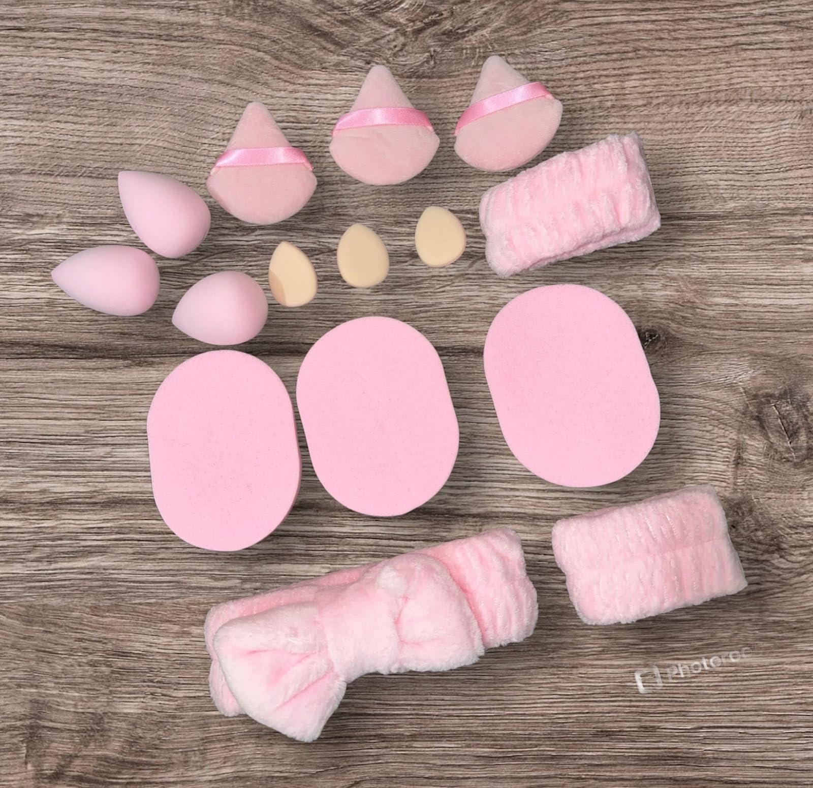 Bhavtaj Collection Makeup Tools Set 15 Pieces Headband Sponges Puffs Cleansing Sponges Dual Use Wet and Dry Skin Safe