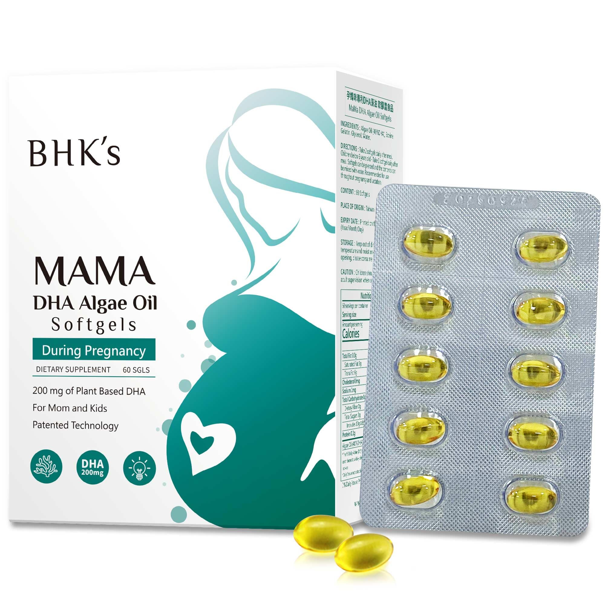 BHK's Prenatal Algae Oil DHA - 200mg Patented Life sDHA for Expecting & Nursing Mothers - Supports Baby s Brain Vision & Nervous System Development 60 Softgels