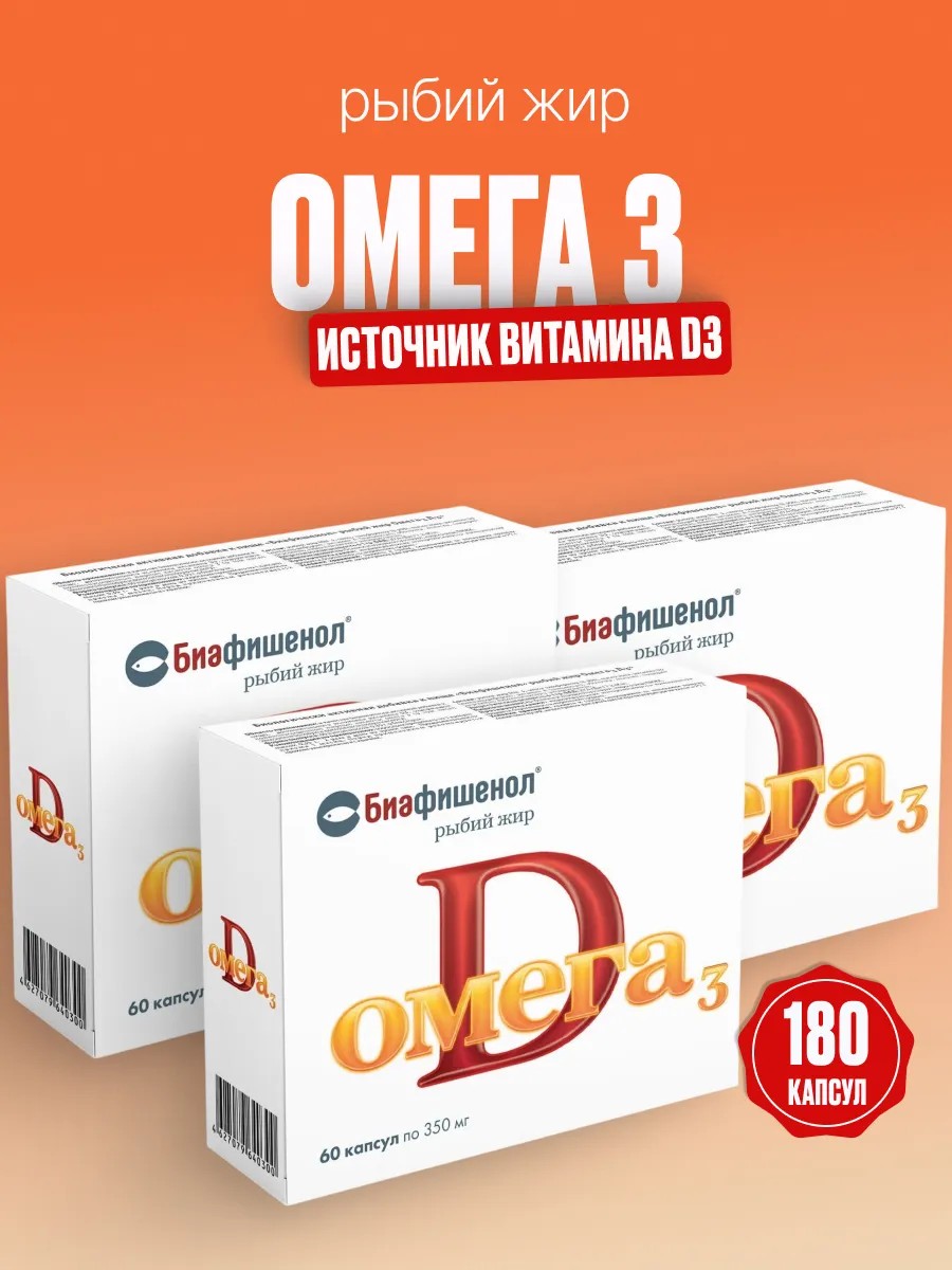 Биафишенол Рыбий жир Омега 3 Д3, 60 капсул