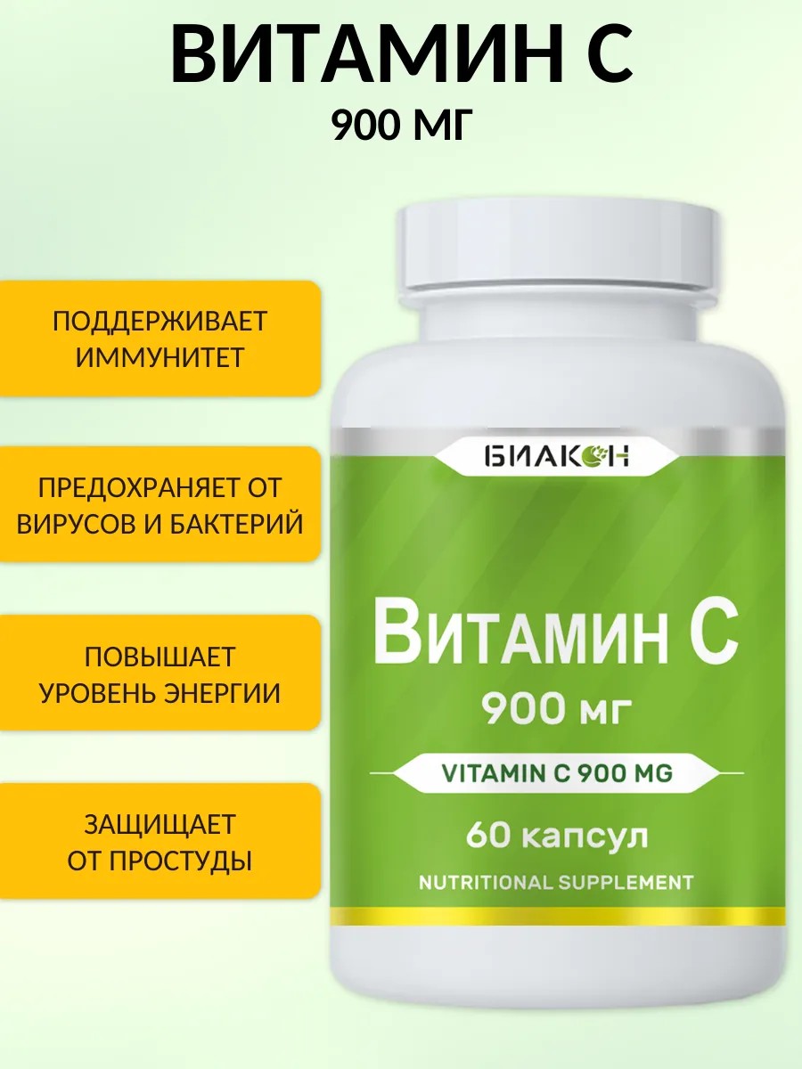 Биакон Витамин C 900 мг. Аскорбиновая кислота 60 капсул