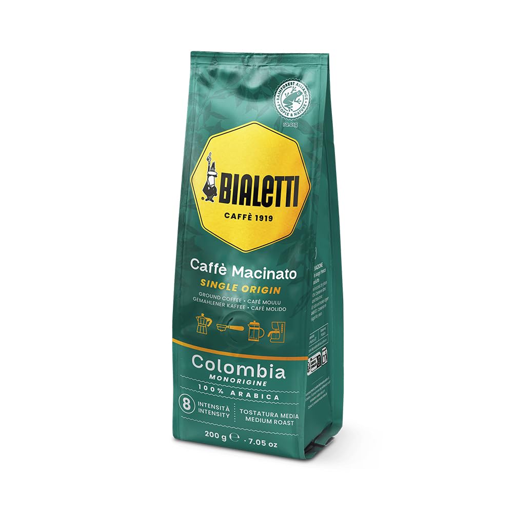 Bialetti Café Moulu Colombie Origine Unique 100 Pour Cent Arabica 200g Torréfaction Moyenne Intensité 8