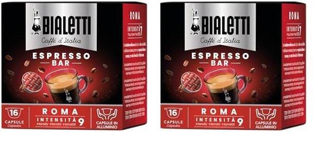 Bialetti Caffè d'Italia Roma, Capsule Espresso, Gusto Intenso, 16 Capsule (Lot de 2)