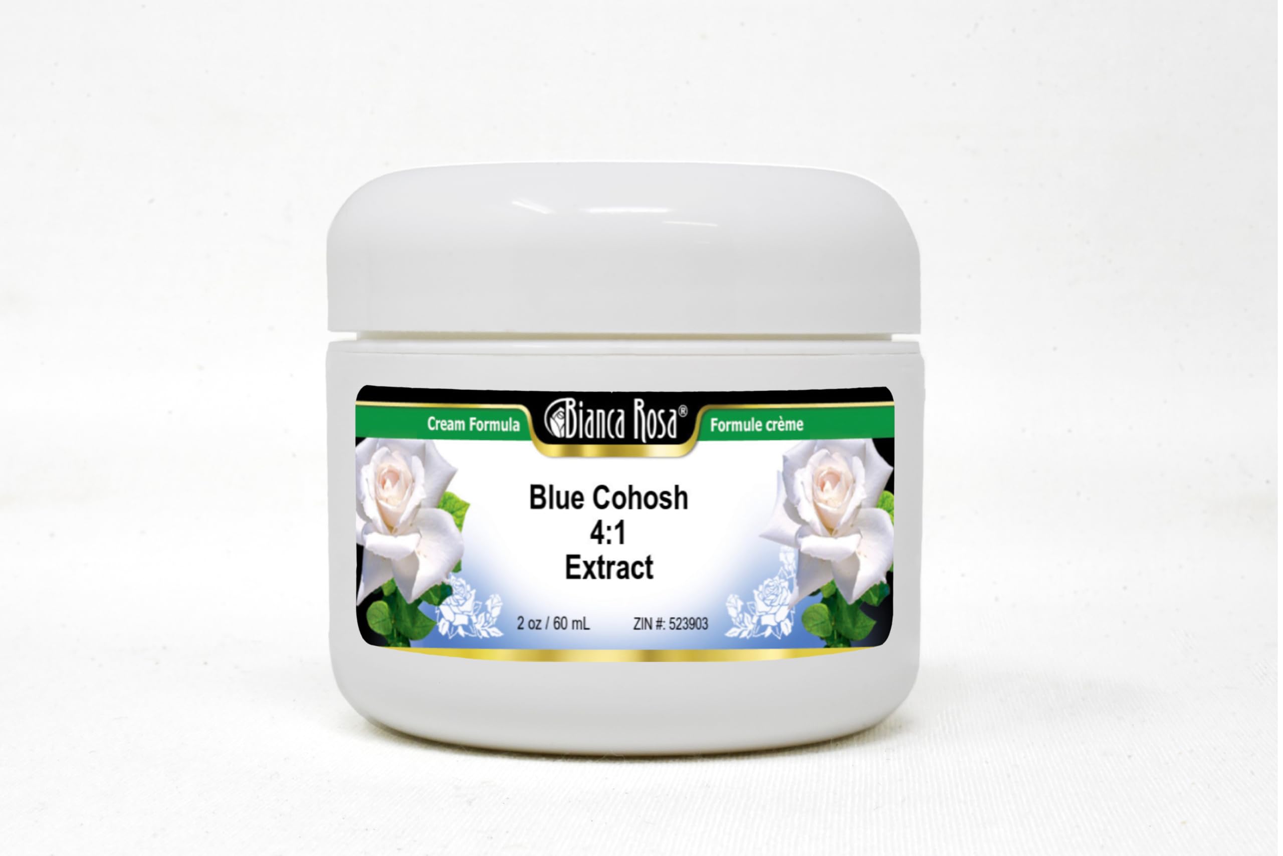 Luxurious Cream Base in a convenient cream jar. Size: 2 oz. Manufacturer: Bianca Rosa. No fillers. Blue Cohosh 4:1 Extract Cream (2 oz, ZIN: 523903).