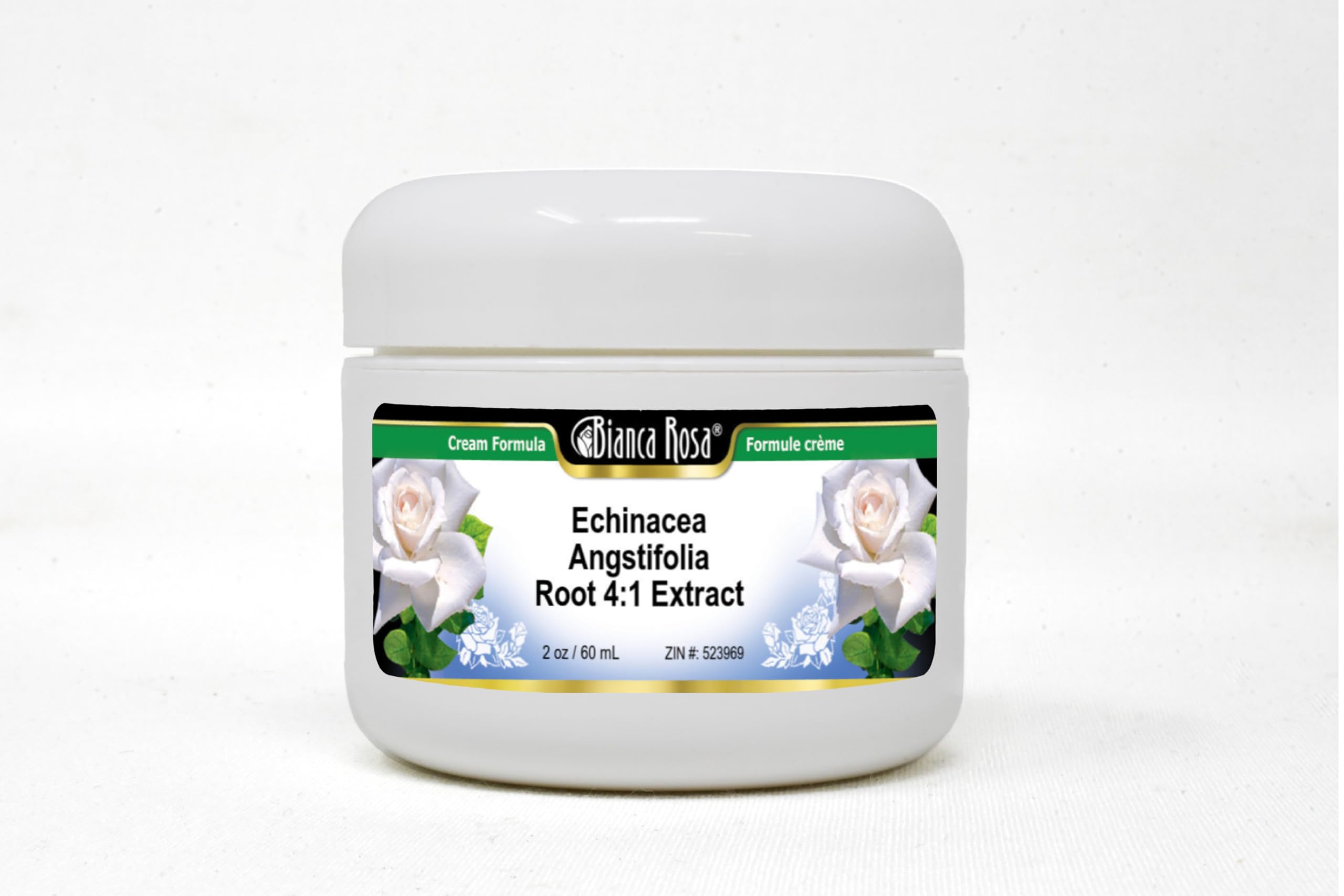 Echinacea Angstifolia Root 4:1 Extract Cream (2 oz, ZIN: 523969) Packaged in the United States in a GMP certified facility (Good Manufacturing Practice). No fillers. Manufacturer: Bianca Rosa Size: 2 oz Luxurious Cream Base in a convenient cream jar. Ingredients: Water, Glycerin, Echinacea Angstifolia Root 4:1 Extract, Water (Purified), Glucose Peroxide, Cetearyl Alcohol, Shea butter, Palm Oil, Coconut Oil, Glyceryl Monostearate, Beeswax, Sunflower Seed Oil, Phenoxyethanol, Dimethicone, Carbomer, Vitamin E, Sodium Citrate.