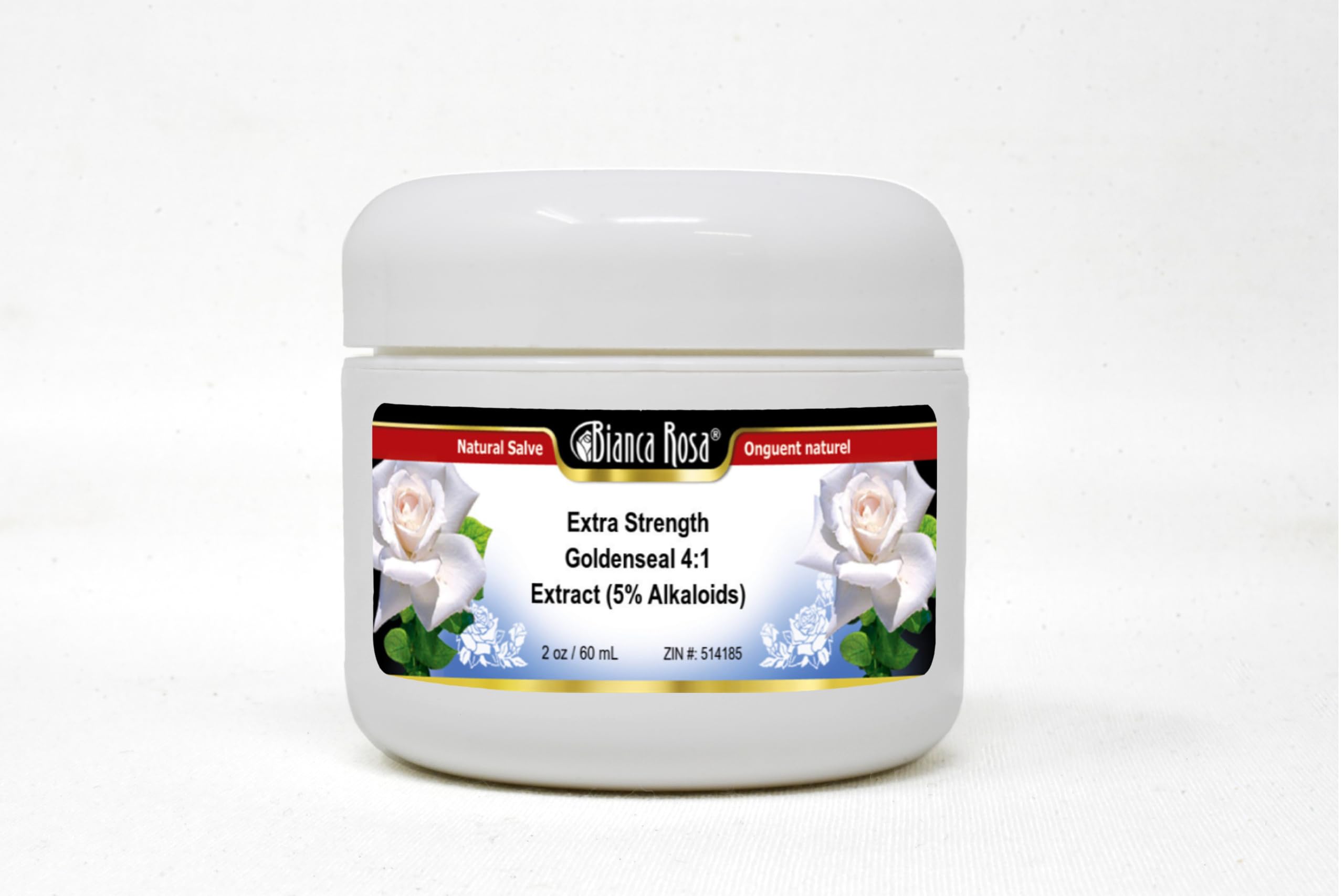 Luxurious Cream Base in a convenient salve jar. Size: 2 oz. Manufacturer: Bianca Rosa. No fillers. Extra Strength Goldenseal 4:1 Extract (5 Alkaloids) - Salve Ointment (2 oz, ZIN: 514185).