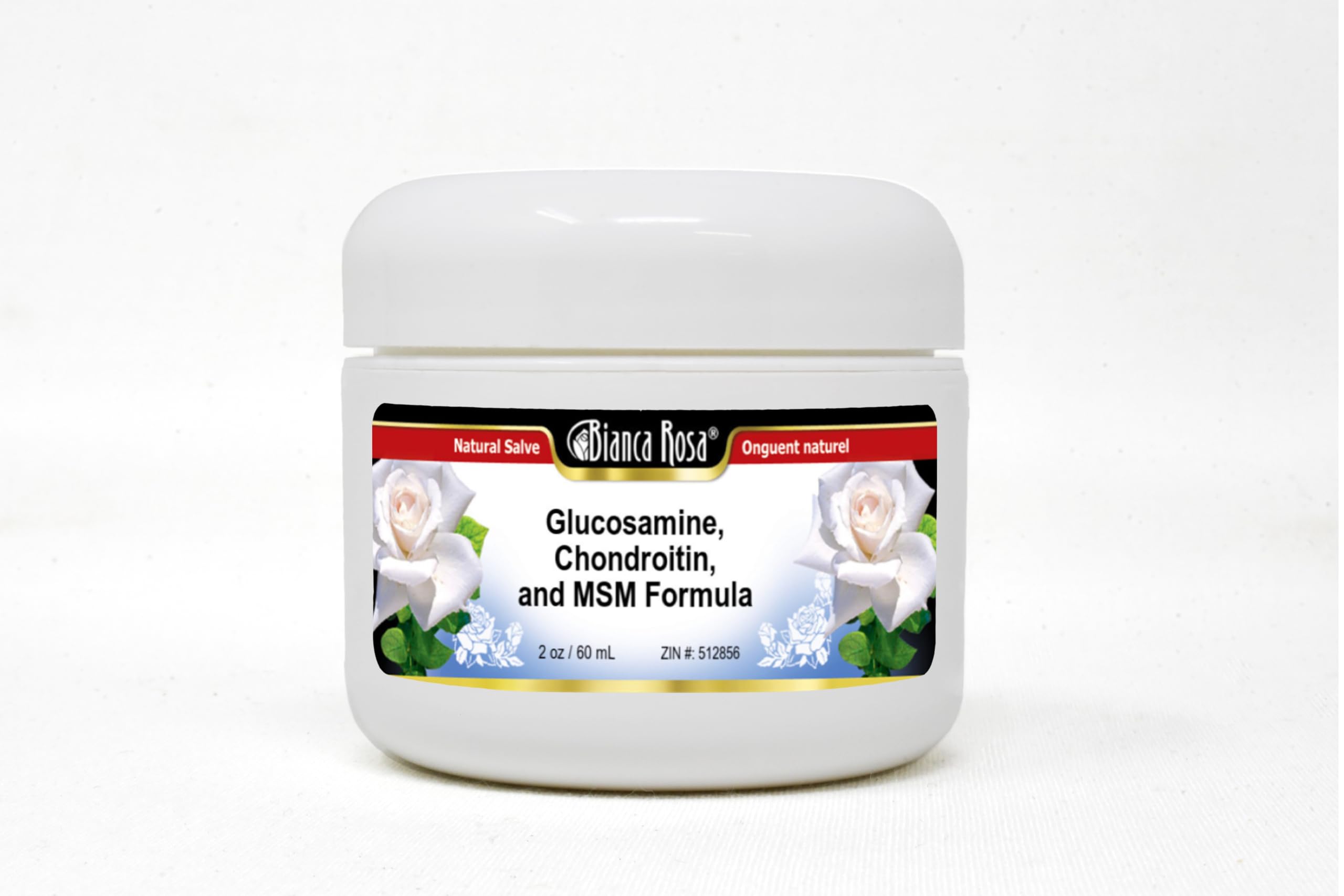 Glucosamine, Chondroitin, and MSM Formula Salve (2 oz, ZIN: 512856) Packaged in the United States in a GMP certified facility (Good Manufacturing Practice). No fillers. Manufacturer: Bianca Rosa Size: 2 oz Luxurious Cream Base in a convenient salve jar. Ingredients: Jojoba Oil, Glucosamine, Chondroitin Sulfate, MSM (Methyl-Sulfonyl-Methane), Beeswax, Benzoin (Preservative)
