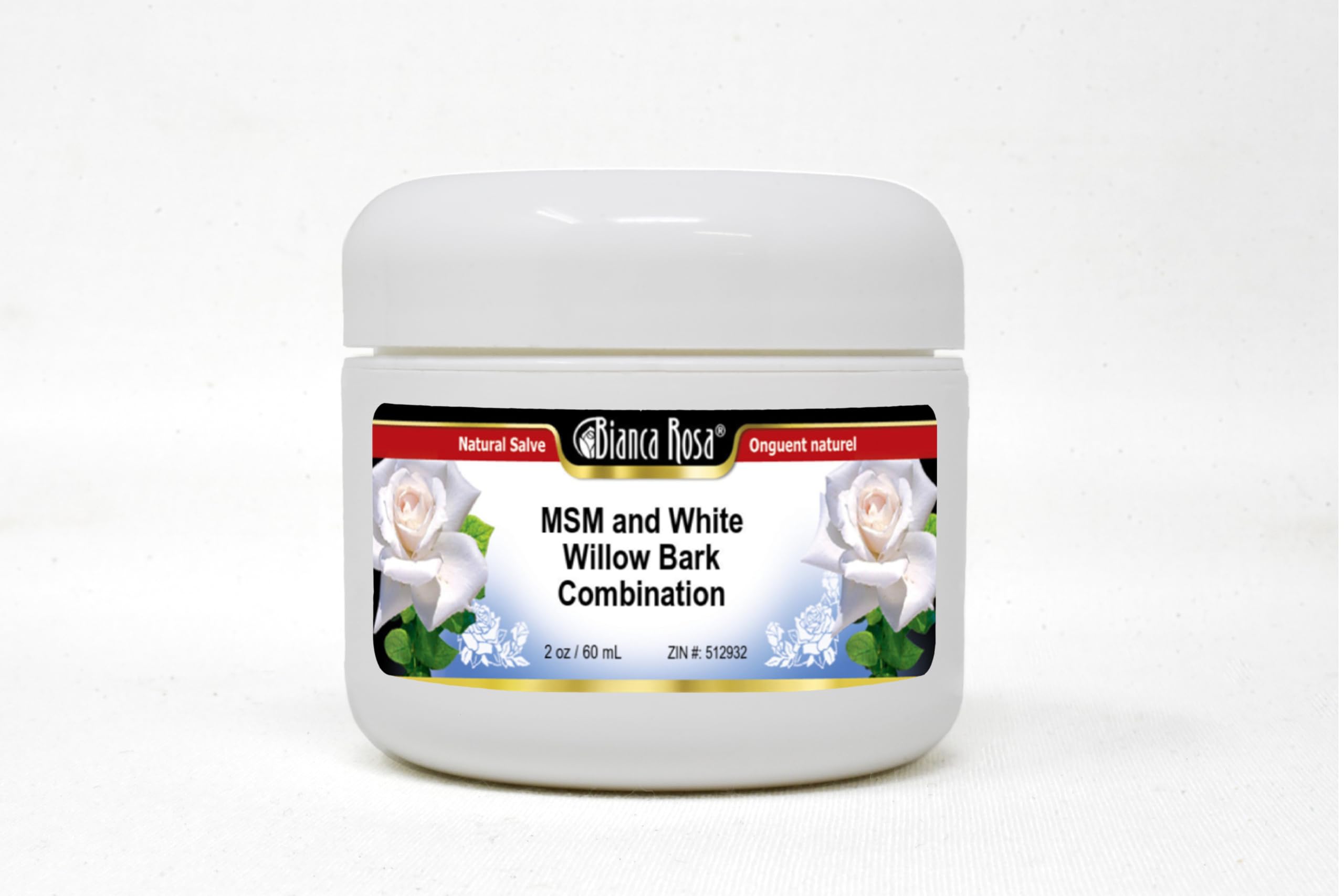 MSM and White Willow Bark Combination - Salve Ointment (2 oz, ZIN: 512932) Packaged in the United States in a GMP certified facility (Good Manufacturing Practice). No fillers. Manufacturer: Bianca Rosa Size: 2 oz Luxurious Cream Base in a convenient salve jar. Ingredients: Jojoba Oil, MSM (Methyl-Sulfonyl-Methane), White Willow, Beeswax, Benzoin (Preservative)