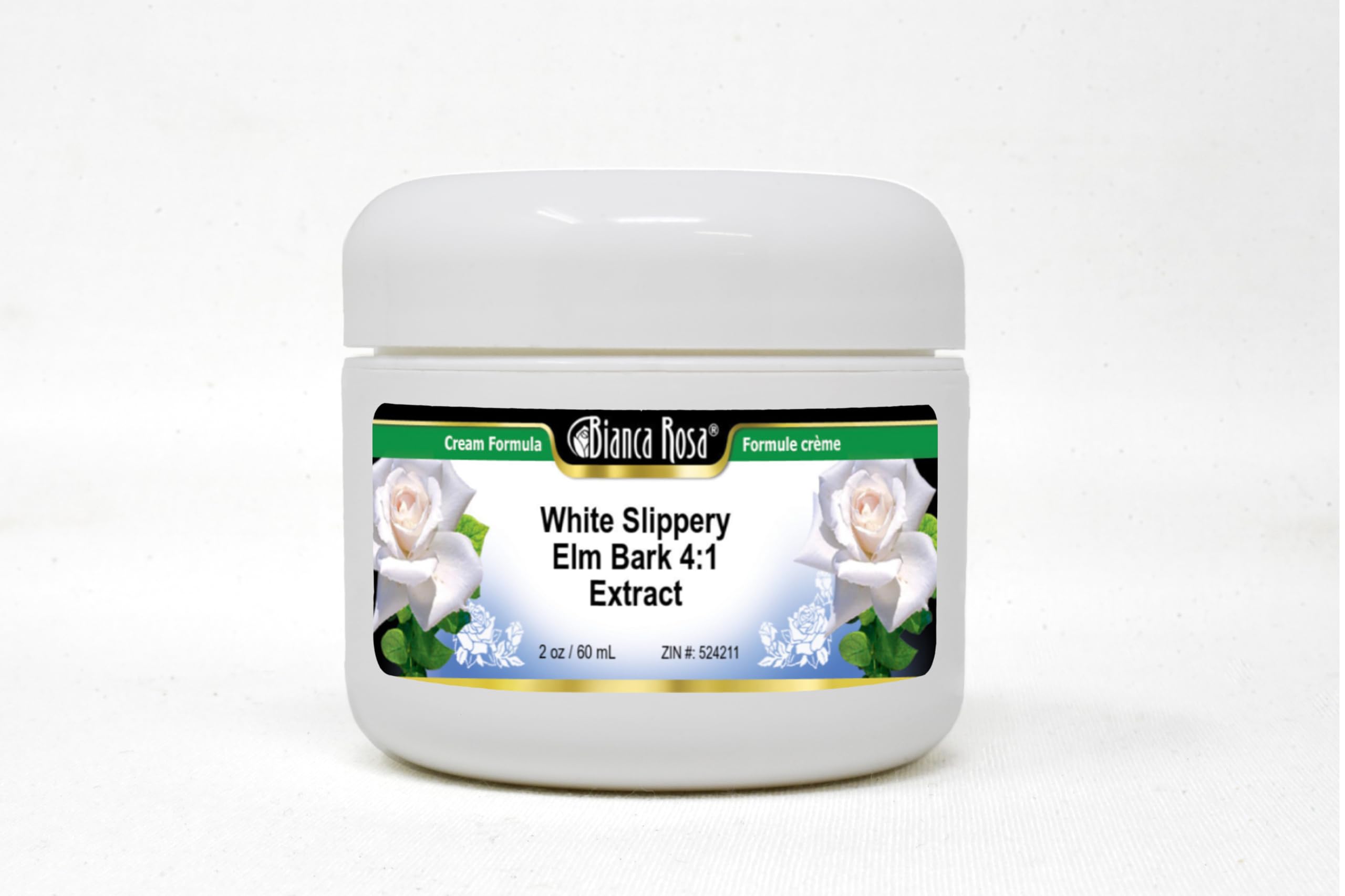 Luxurious Cream Base in a convenient cream jar. Size: 2 oz. Manufacturer: Bianca Rosa. No fillers. White Slippery Elm Bark 4:1 Extract Cream (2 oz, ZIN: 524211).
