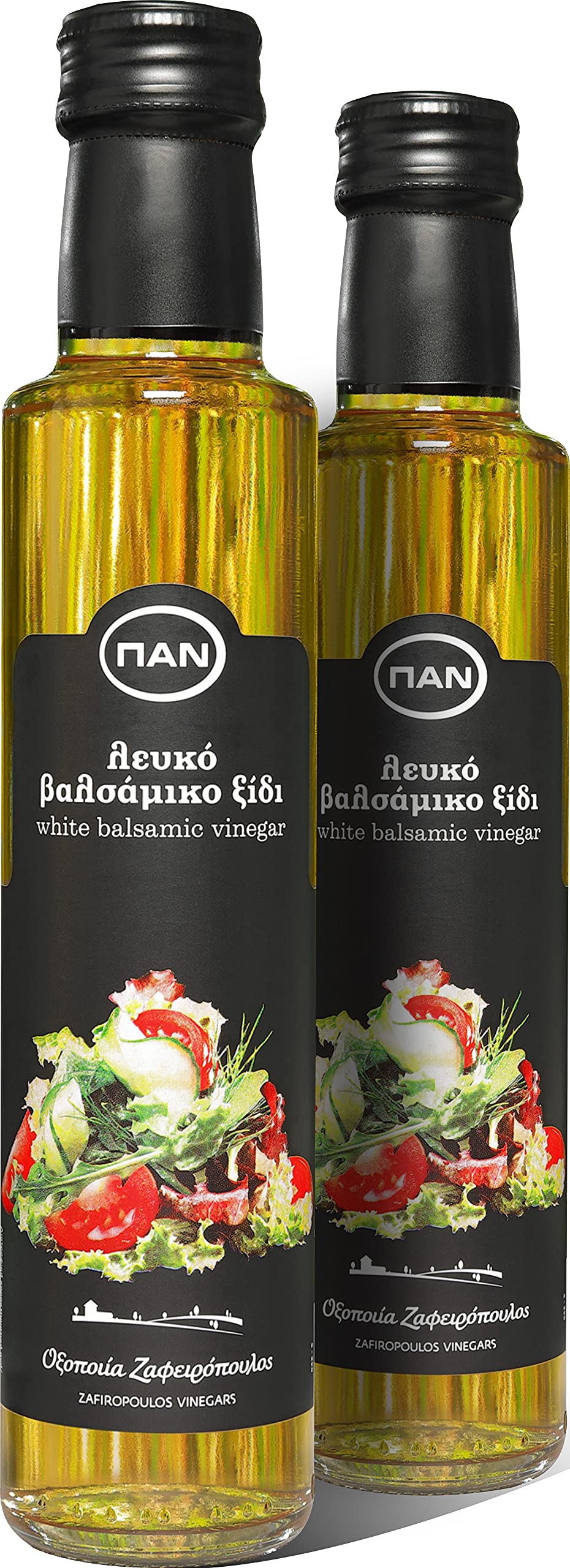 Ingredients: White balsamic vinegar (wine vinegar, concentrated grape must). 6 acid. Allergy note: Contains sulfites. Storage instructions: Store in a cool, dry place. Sediment may form naturally. Country of origin: Greece. Responsible producer: Pan Zafiropoulos IKE, 20 km Marathonos Av. GR 190 09 Pikermi - Attica INGREDIENTS White balsamic vinegar (wine vinegar, concentrated grape must). 6 acid