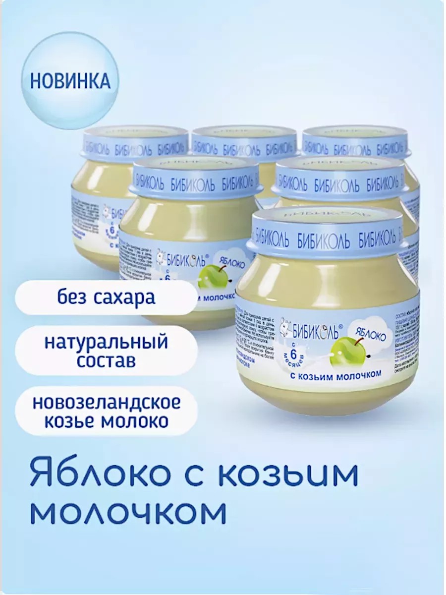 БИБИКОЛЬ Пюре детское Яблоко с козьим молочком, 6x80гр