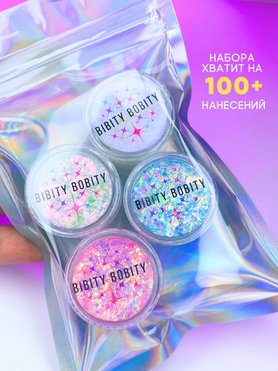 | Комплектация | пластиковая баночка глиттером 5мл- 4шт; голографический зип-лок |